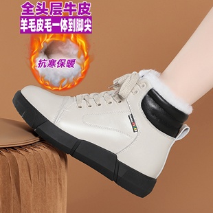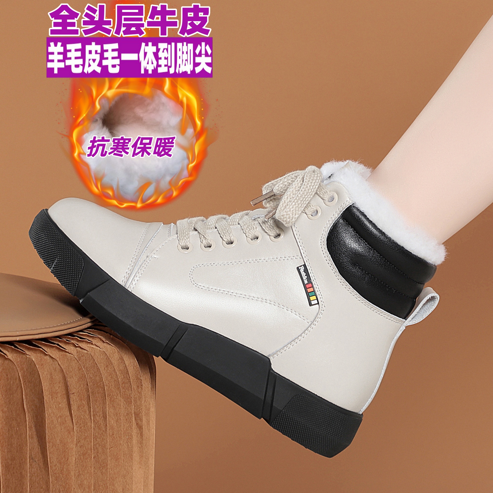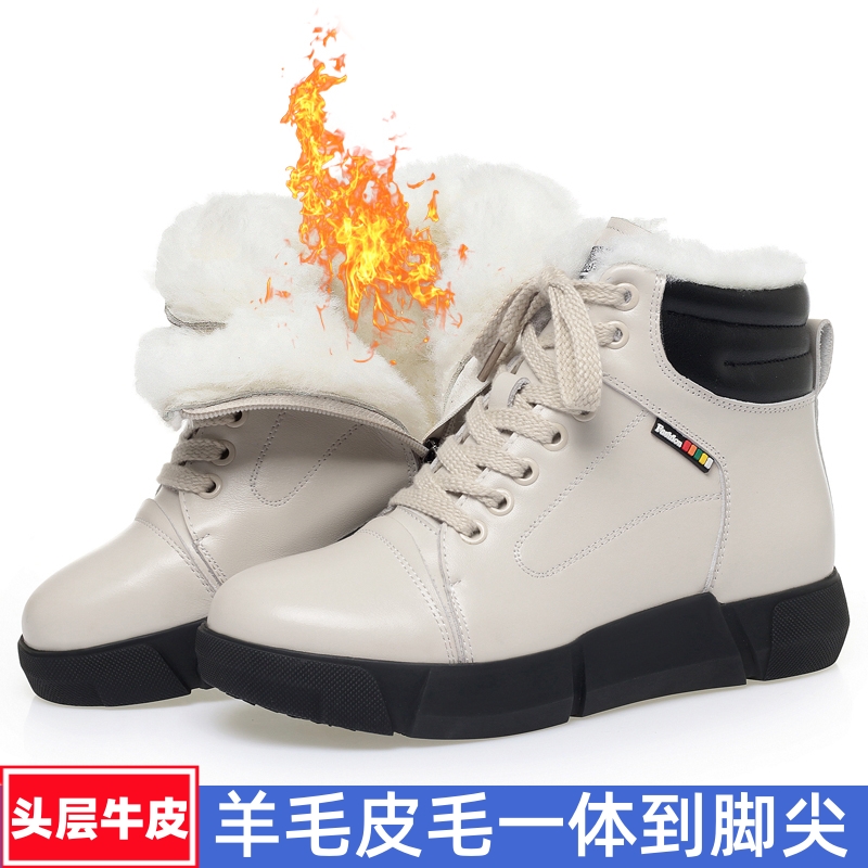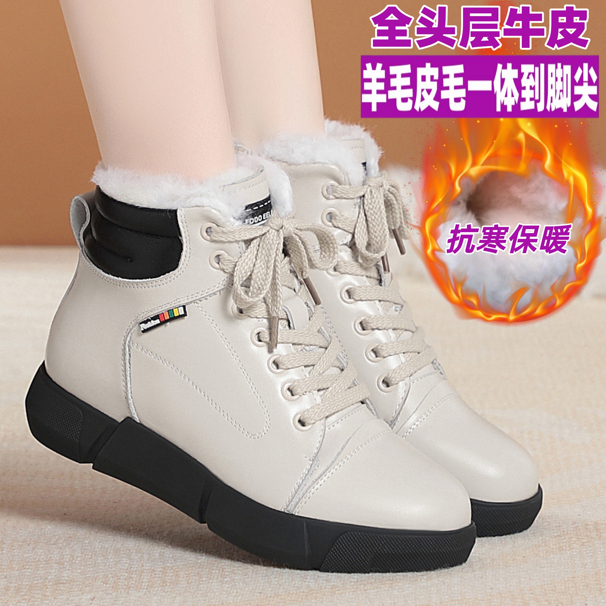 加绒加厚东北大棉鞋 真皮羊毛短靴皮毛一体妈妈皮鞋 冬季 雪地靴女款