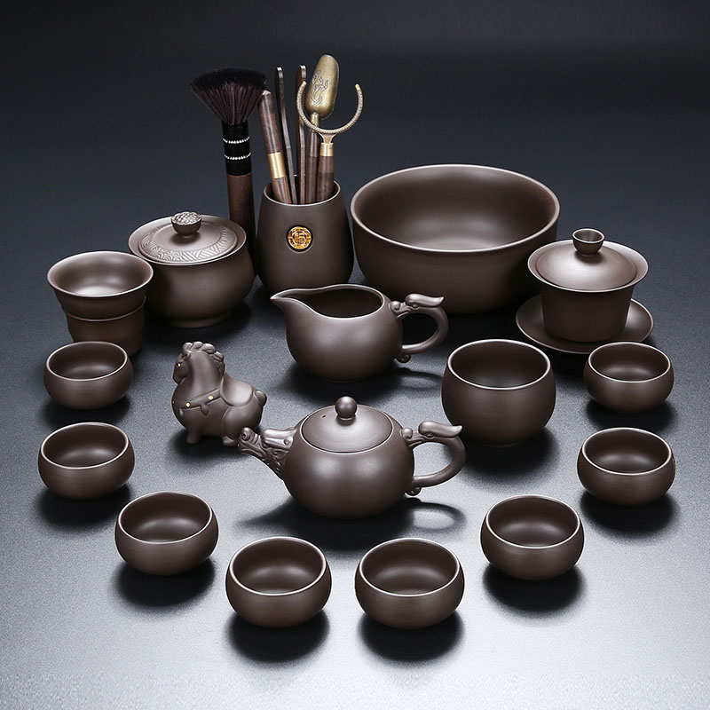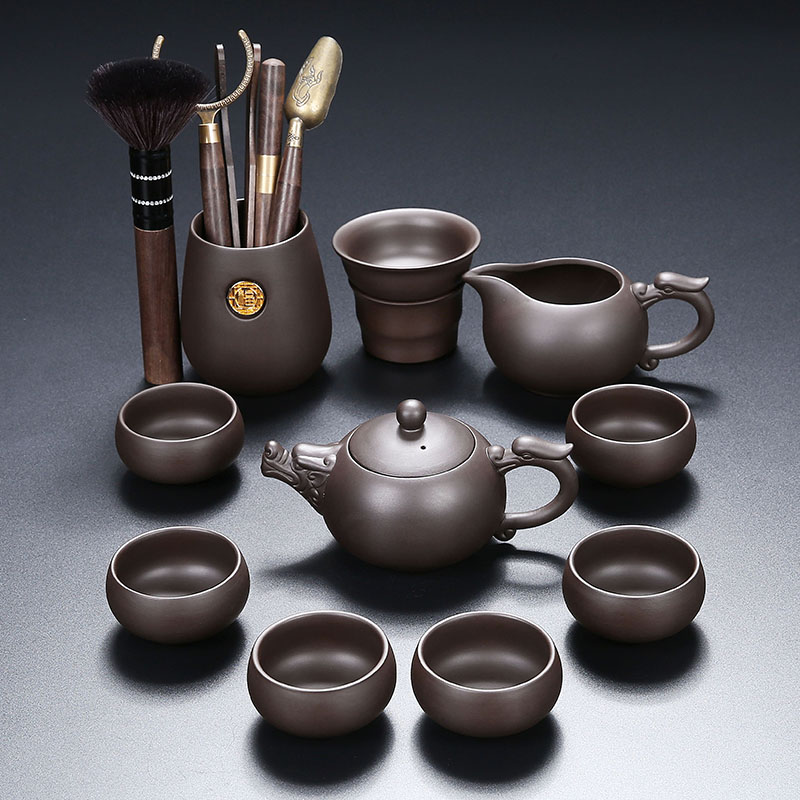 懒人茶具套装 家用喝茶防烫泡茶壶陶瓷功夫茶杯石磨半自动冲茶神器