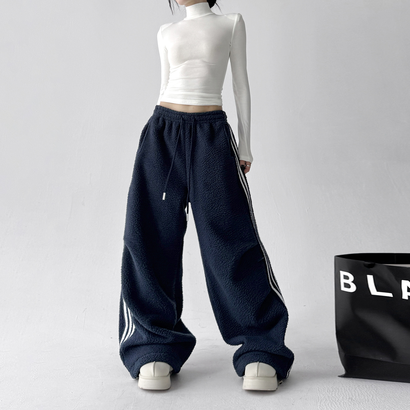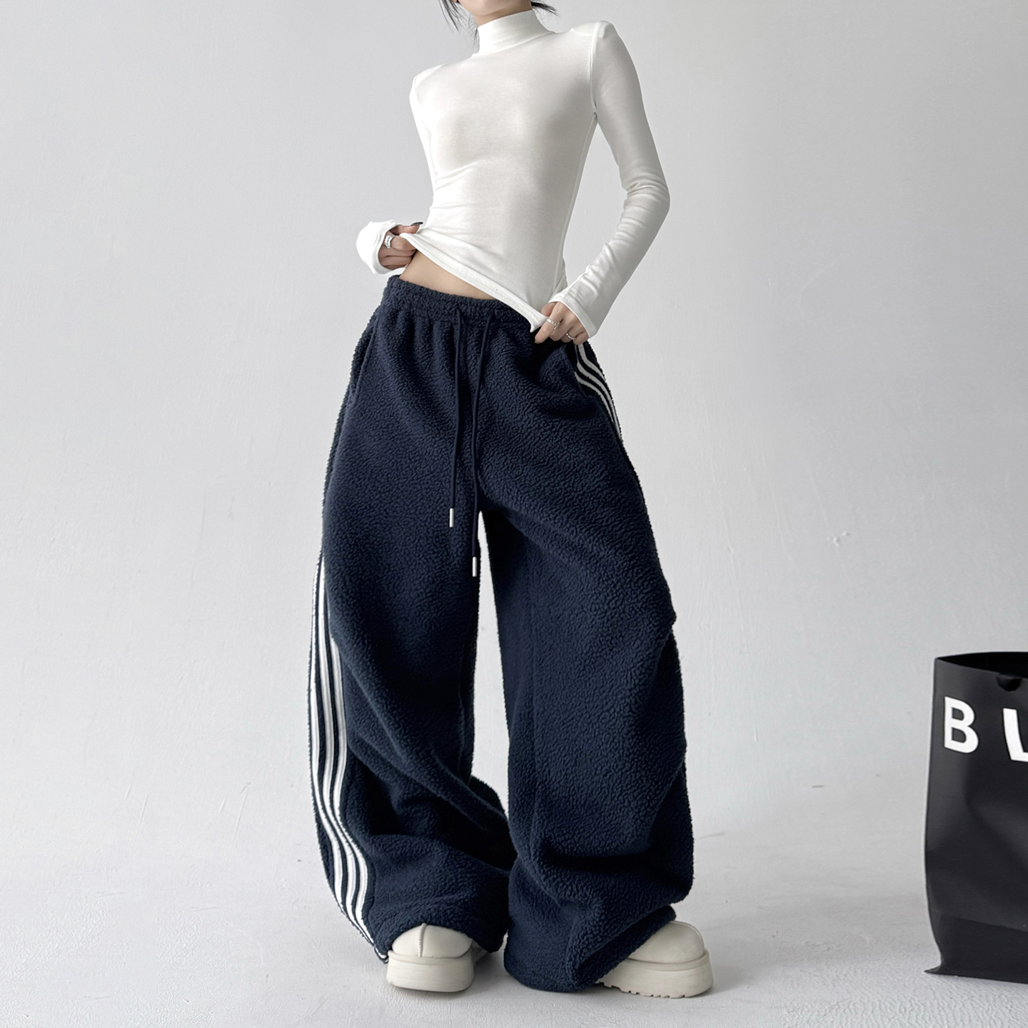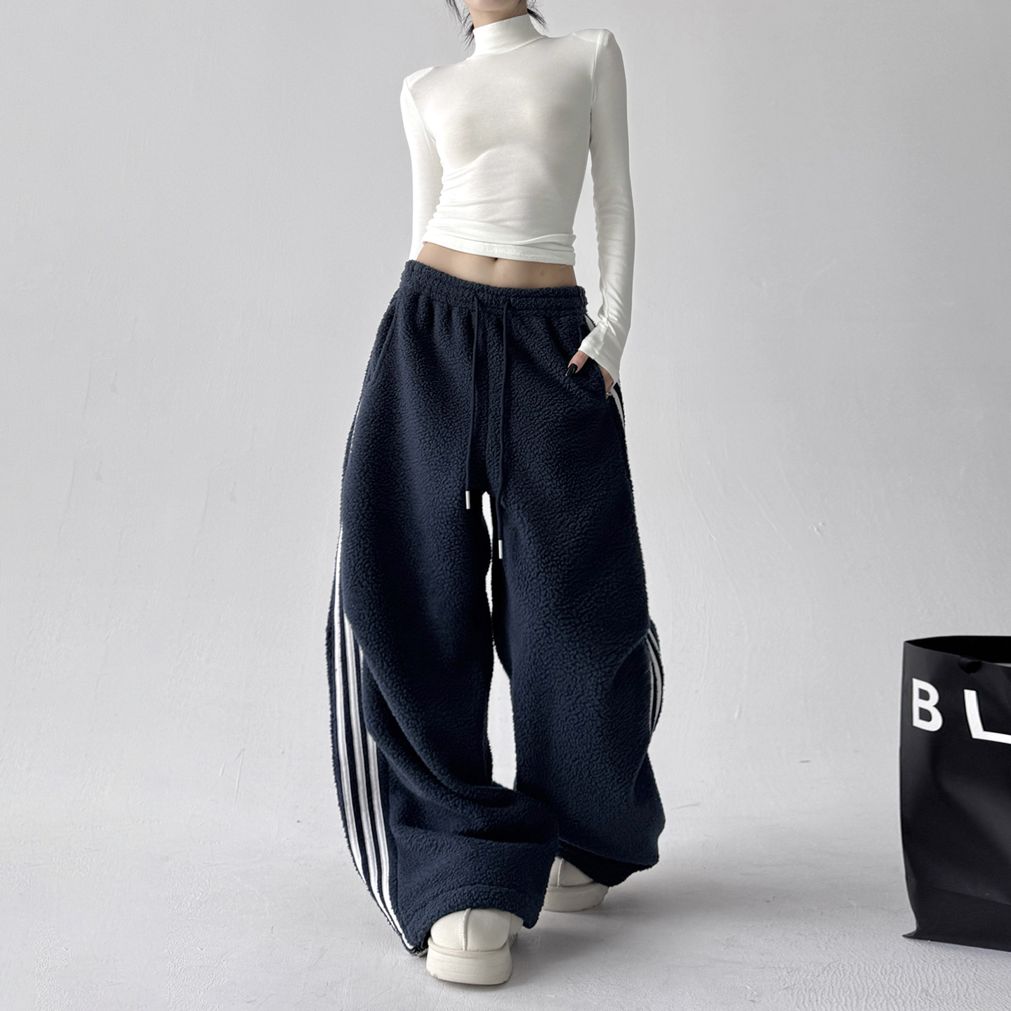 加绒运动裤 休闲阔腿棉裤 女宽松束脚秋冬2025新款 摇粒绒卫裤