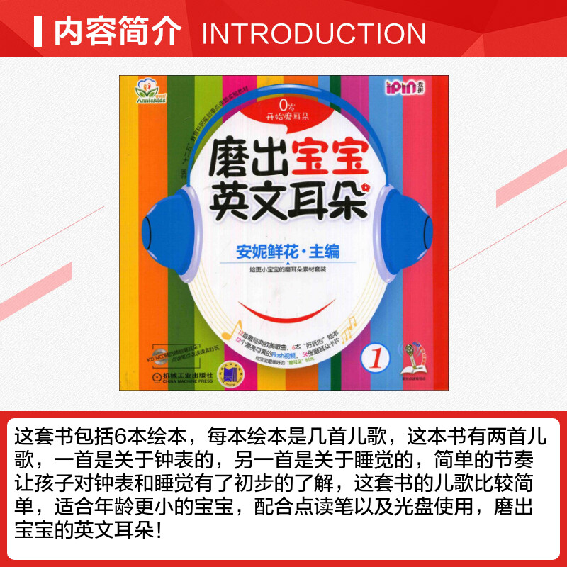 社新华正版 4岁幼儿英语启蒙教材绘本自然拼读儿童读物学英语儿歌安妮鲜花机械工业出版 预备级点读 磨出宝宝英文耳朵1安妮花2
