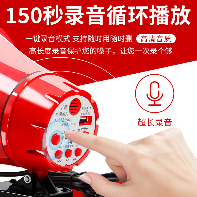 麦叶扩音器12V90V大功率户外车载录音喊话器摆摊商铺宣传叫卖喇叭