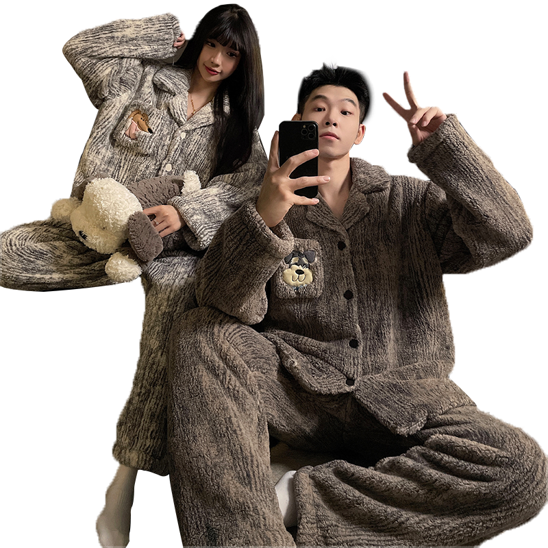 加绒加厚可爱家居服套装 秋冬季 2025新款 猫人法兰绒情侣睡衣男女款