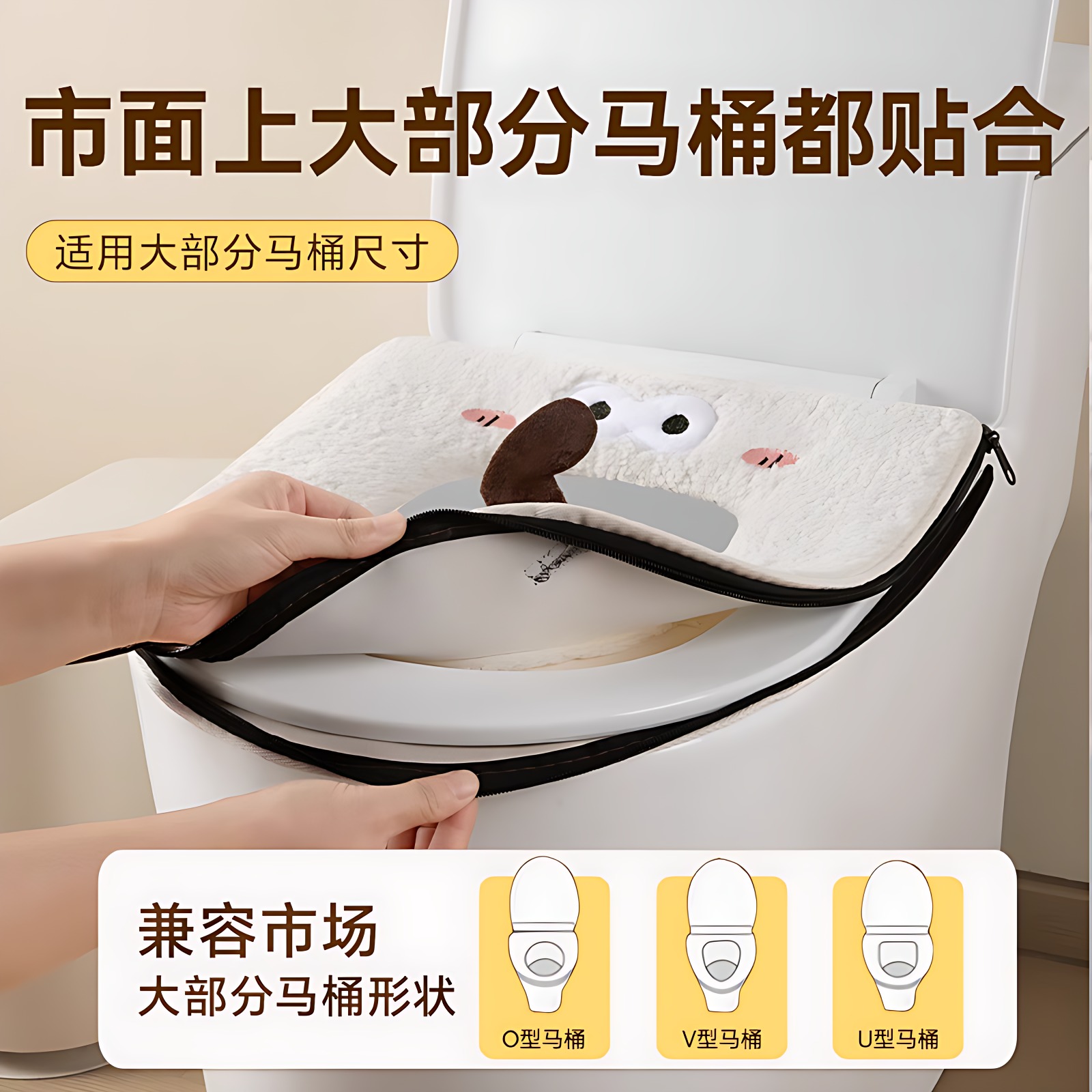 加厚保暖马桶垫 冬季 马桶坐垫家用坐便器套垫四季 通用可水洗拉链款