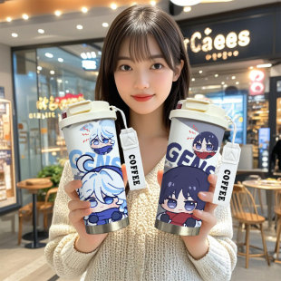 原神周边保温杯芙宁娜散兵胡桃魈大容量儿童男生不锈钢咖啡水杯子