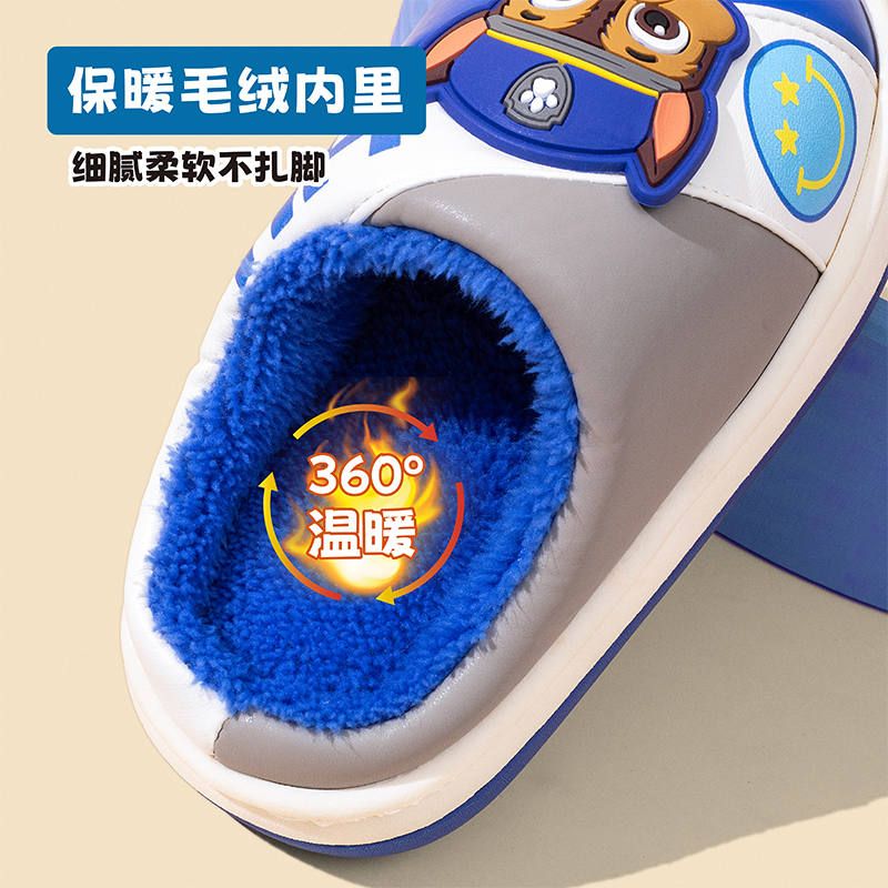 防滑保暖室内拖鞋 汪汪队立大功新款 加绒卡通棉鞋 秋冬季 儿童棉拖鞋