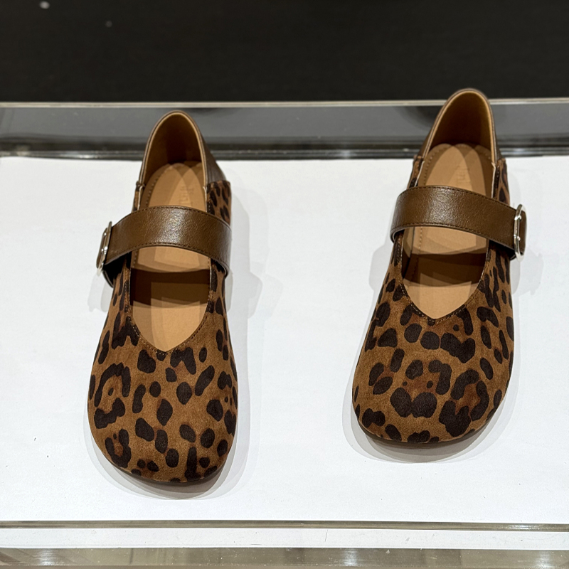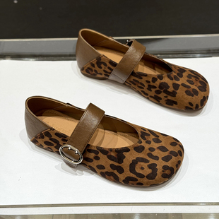 内增高圆头单鞋 奶奶鞋 女2025新款 复古豹纹玛丽珍豆豆鞋 子 秋季 韩版