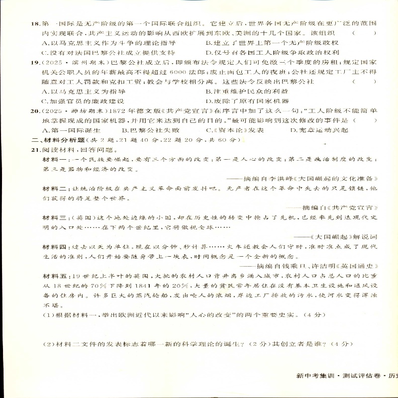 2025六三制9九年级全一册历史测试评估卷新中考集训山东美术出版 社配人教版