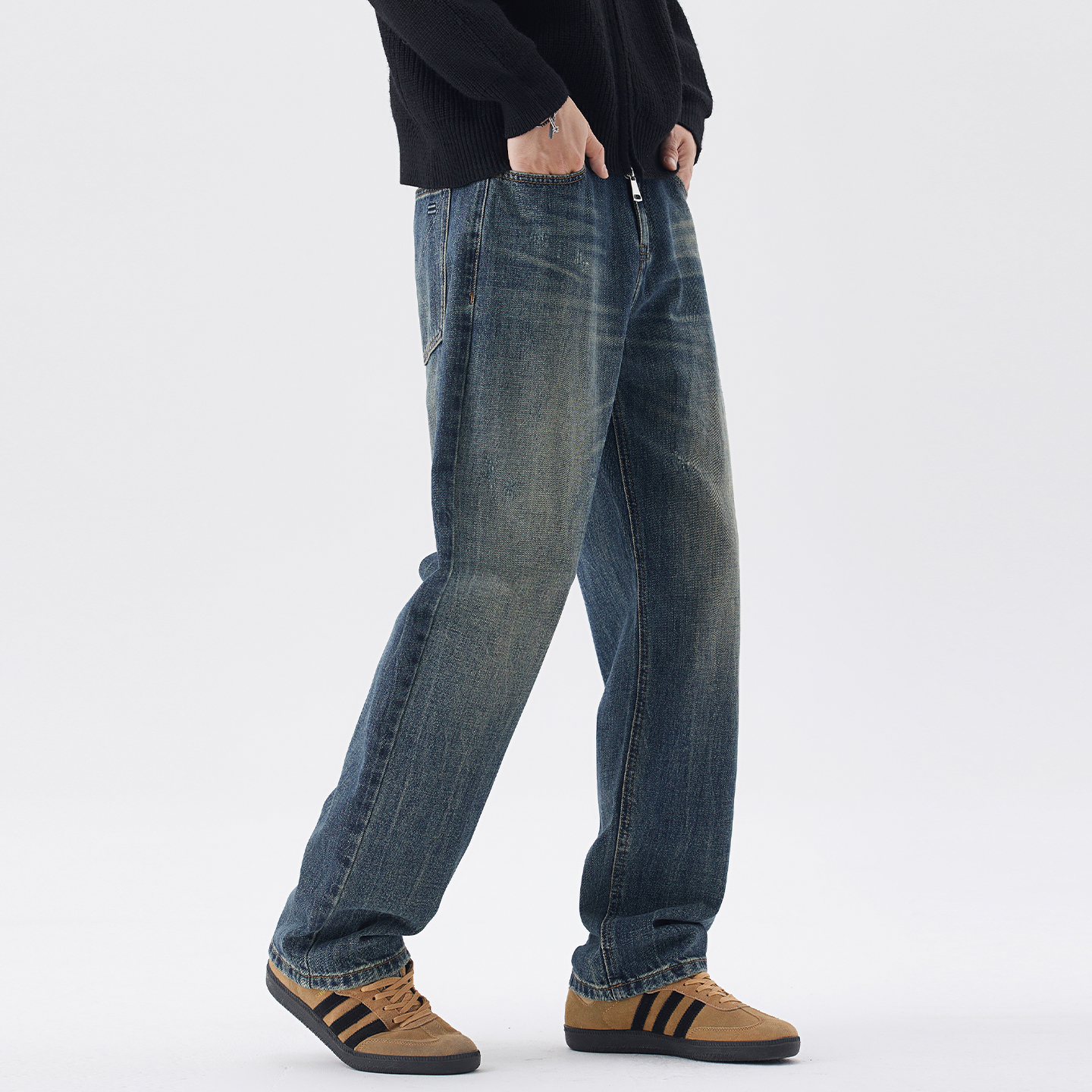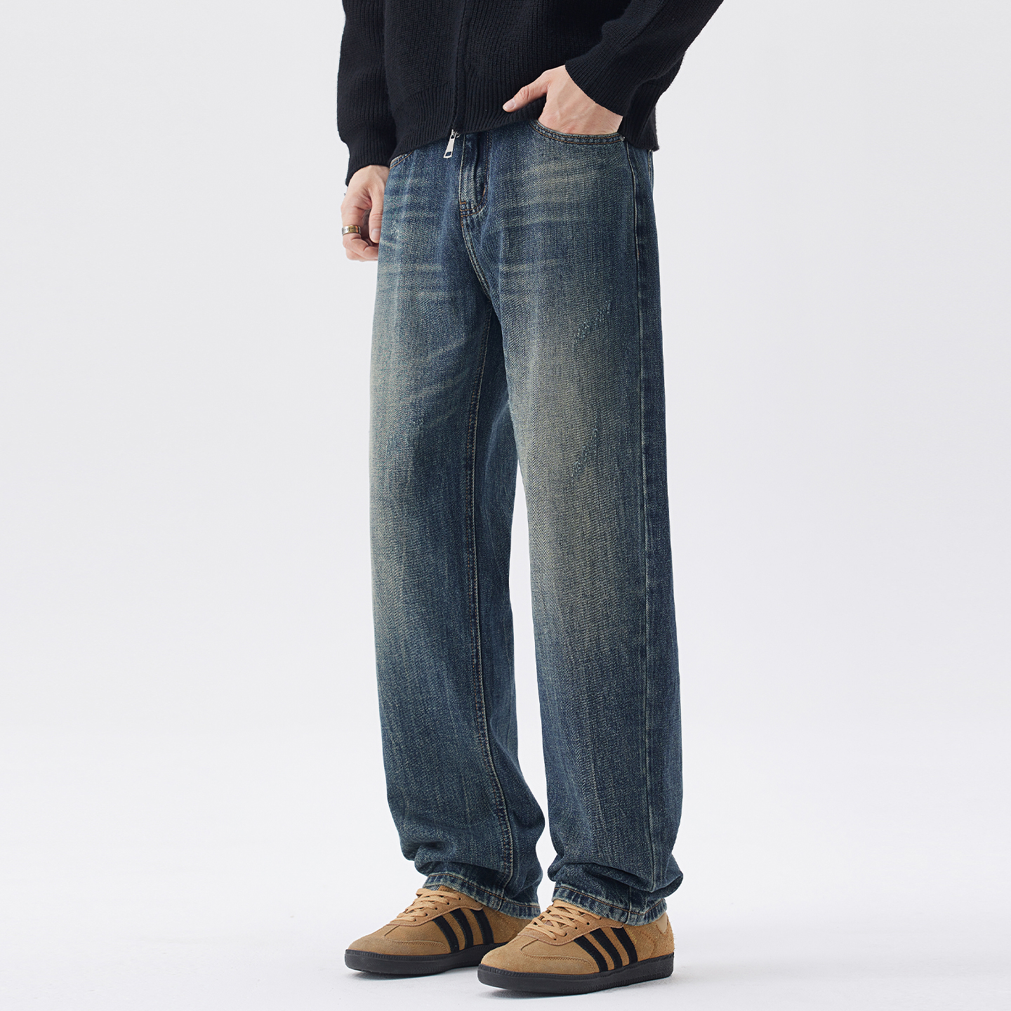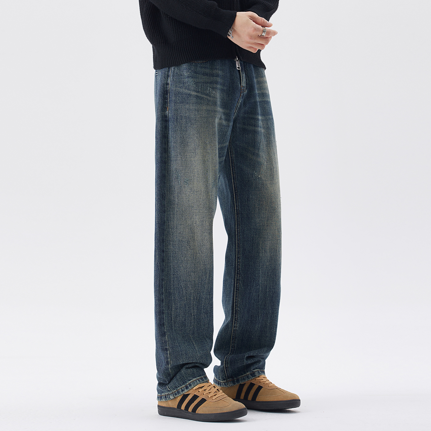男士 子阔腿复古耐磨裤 新款 宽松直筒休闲长裤 子N3Z 秋季 罗蒙牛仔裤