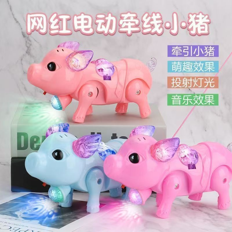 电动牵绳小猪创意会走路会跑会发光 音乐猪男女孩儿童玩具