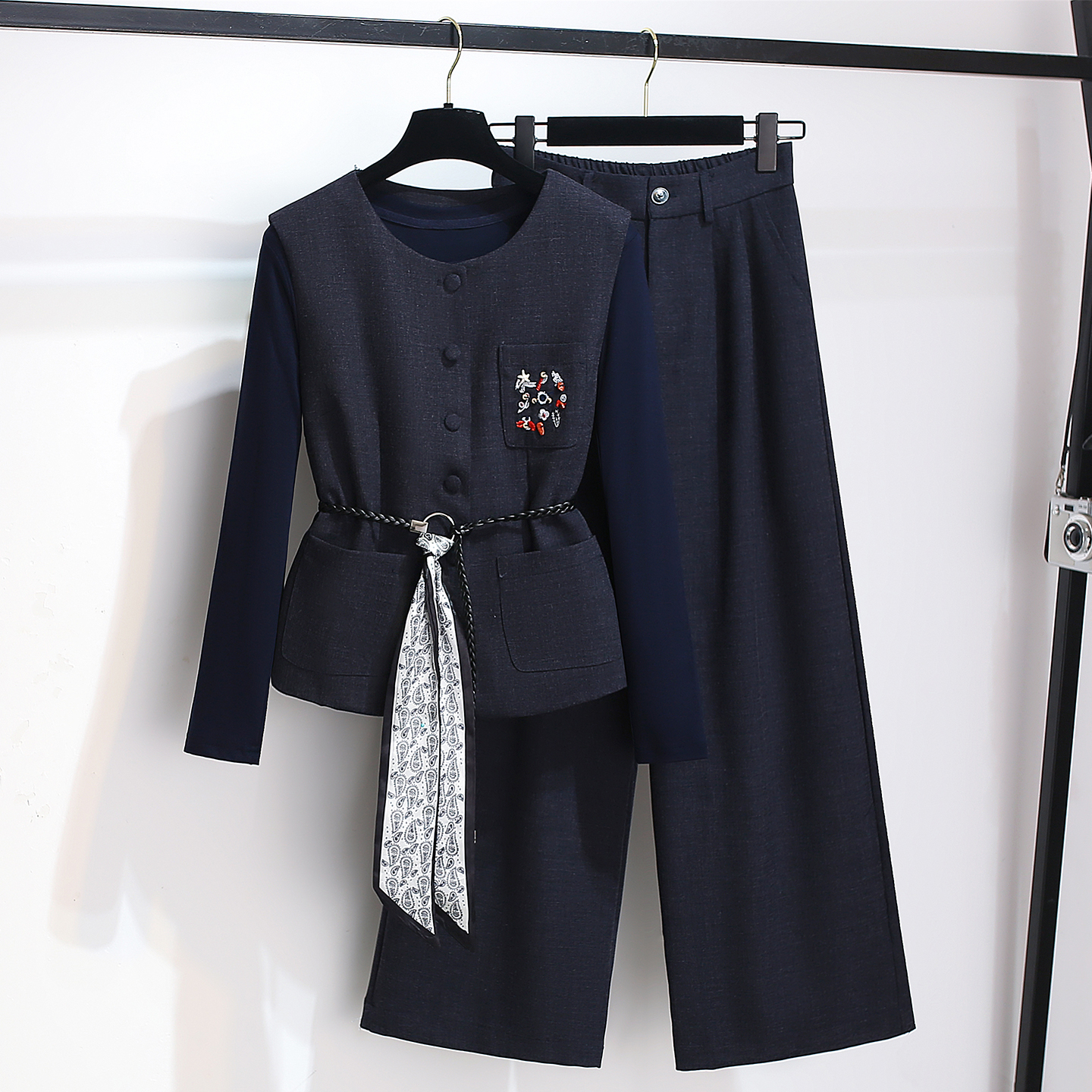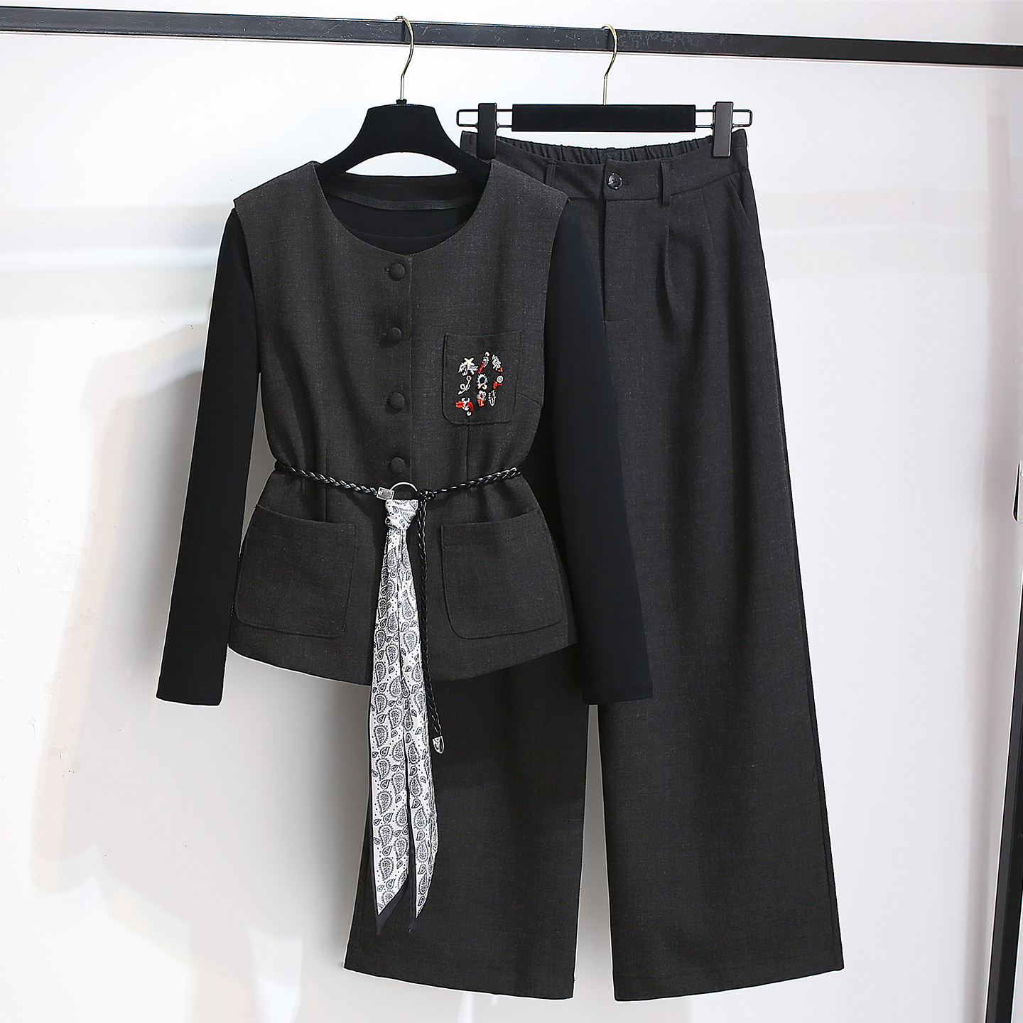 子女2025秋装 阔腿裤 新款 巨好看 西装 一整三件套装 马甲背心打底衫