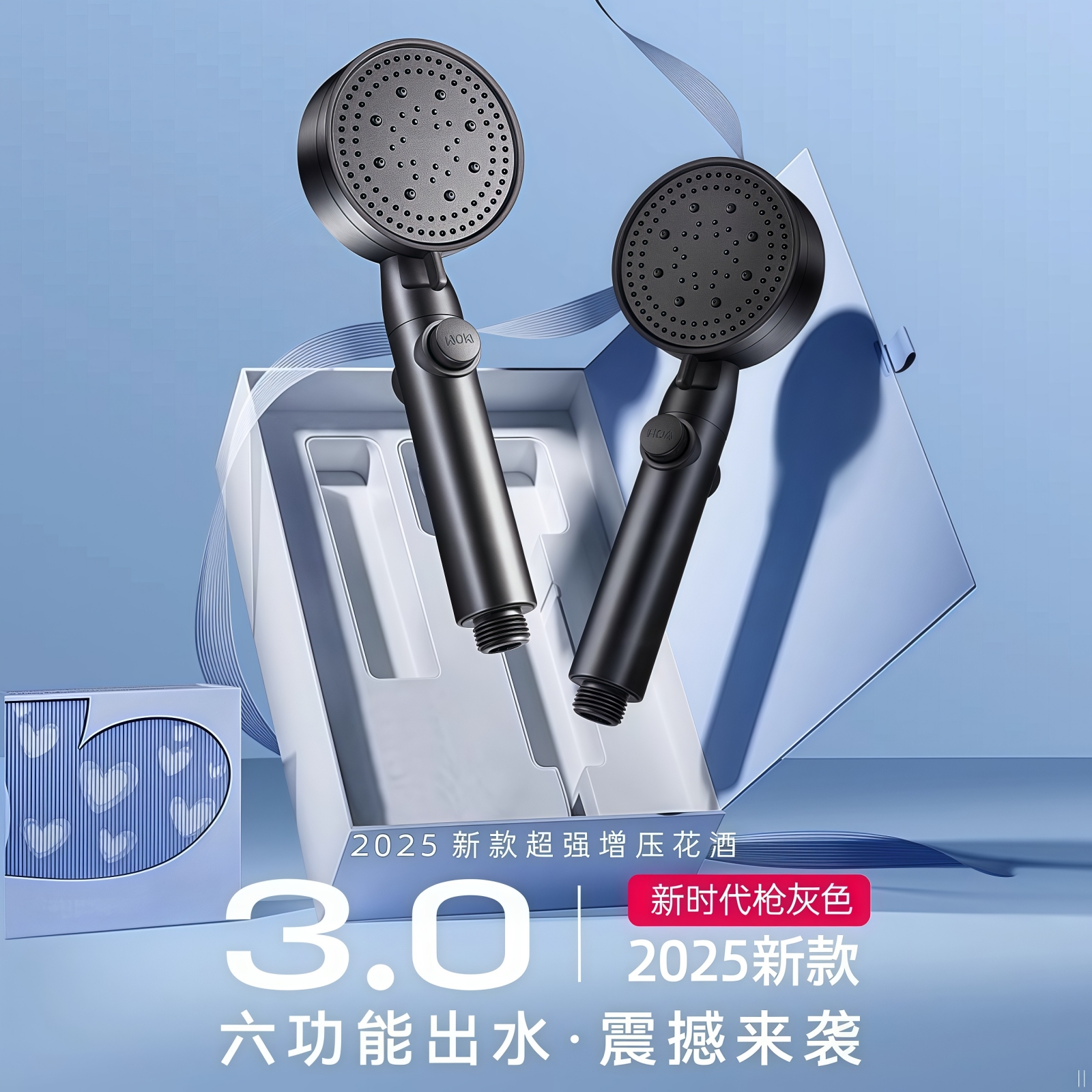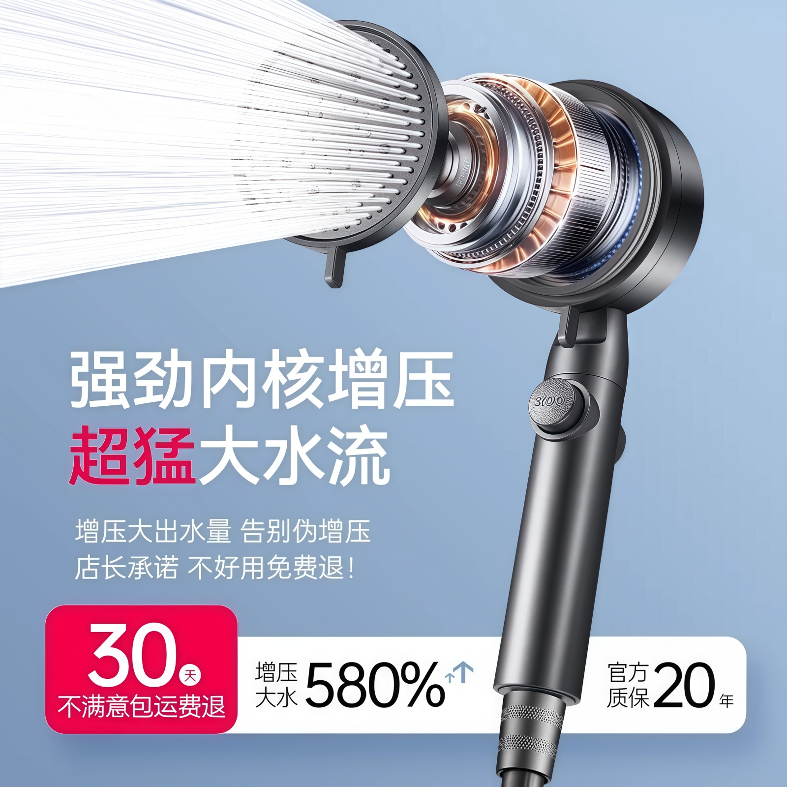 增压淋浴花洒喷头家用浴室热水器洗澡浴霸加压莲蓬头套装 卫生间