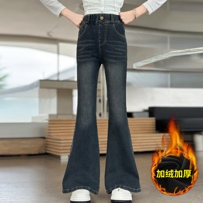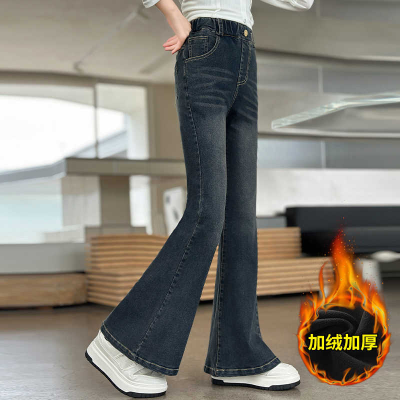 中大童休闲洋气长裤 女童牛仔裤 儿童加绒加厚喇叭裤 2025新款 秋冬款