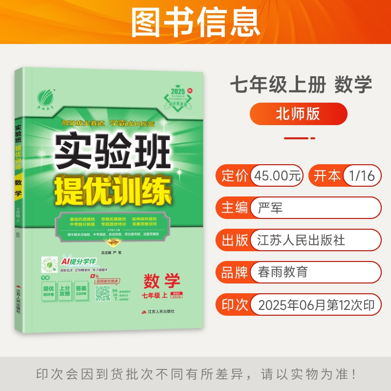 初一初二初三同步训练习题册课时分层作业本单元 2025秋实验班提优训练七八九年级上册数学BS北师大版 综合拓展春雨教育 数学 北师版