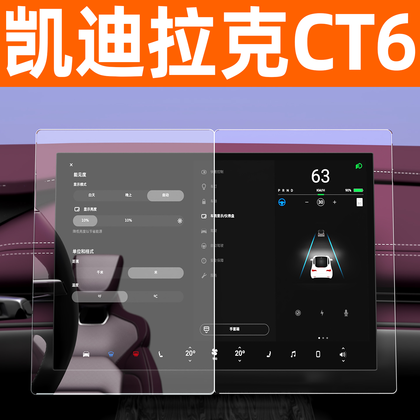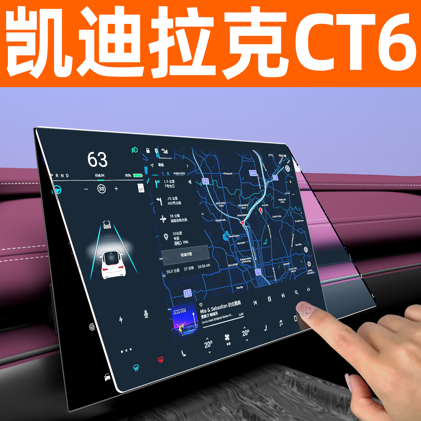 专用于凯迪拉克CT6屏幕钢化膜车机显示贴膜汽车中控导航屏保护膜