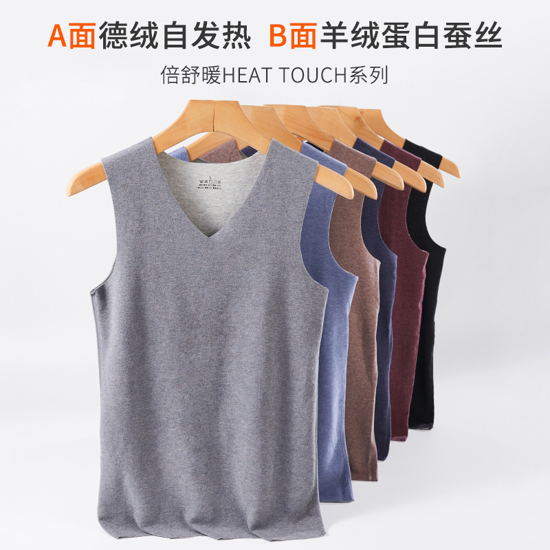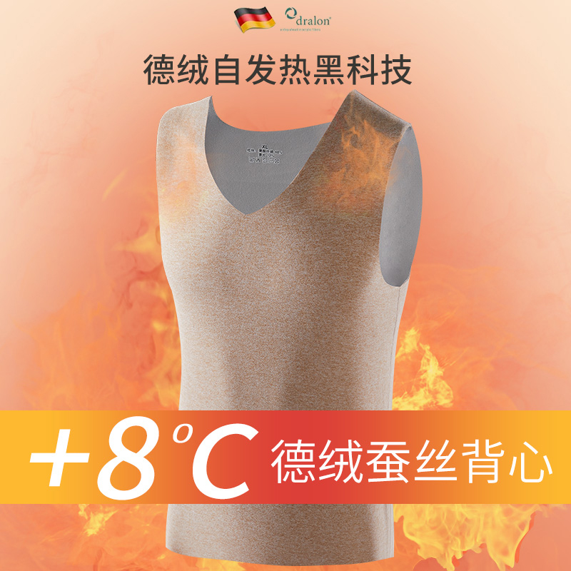芬腾羊毛蚕丝保暖内衣男绒德无痕发热内穿加绒加厚打底背心冬上衣