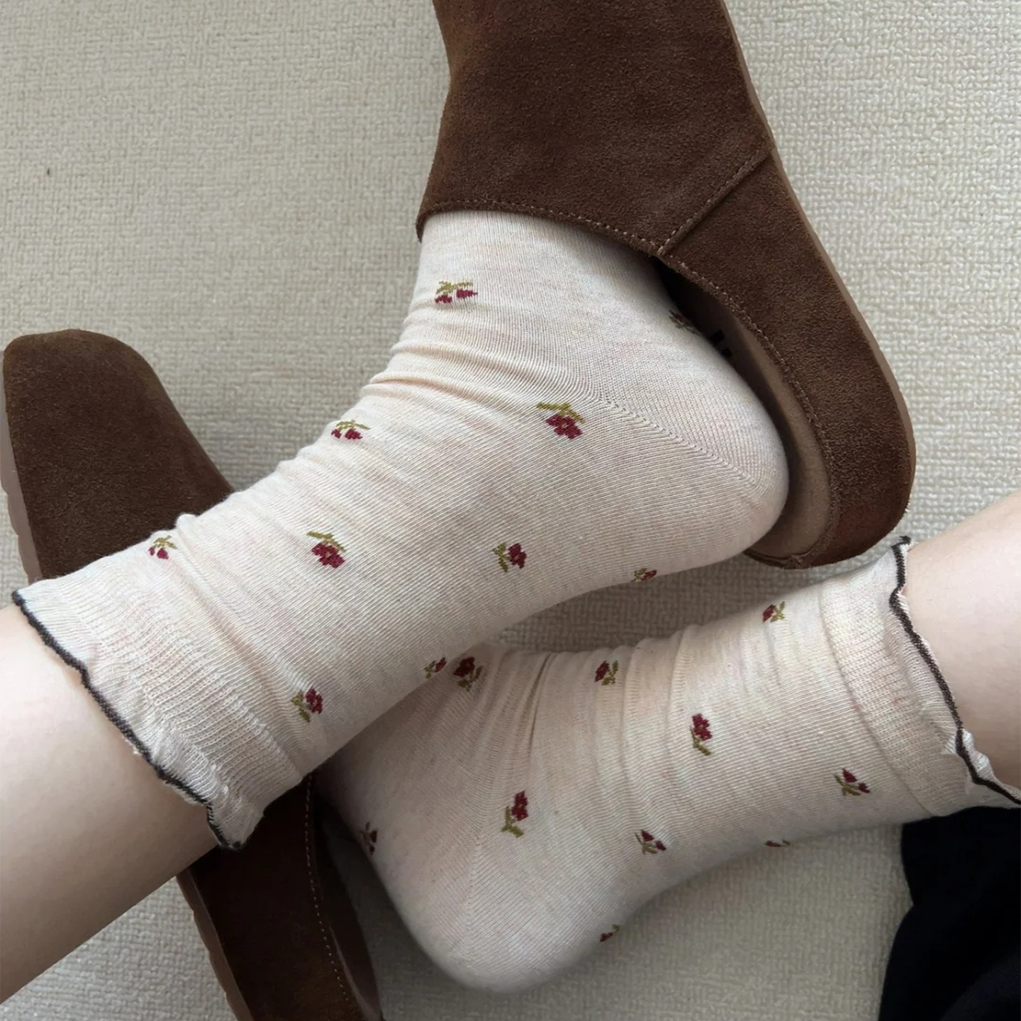 勃肯鞋 秋中筒袜子miu系堆堆袜长袜咖色袜子花边袜子 搭配袜子女款