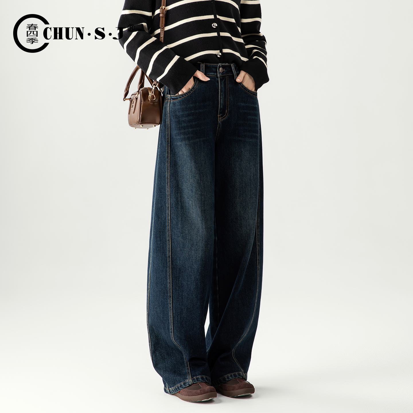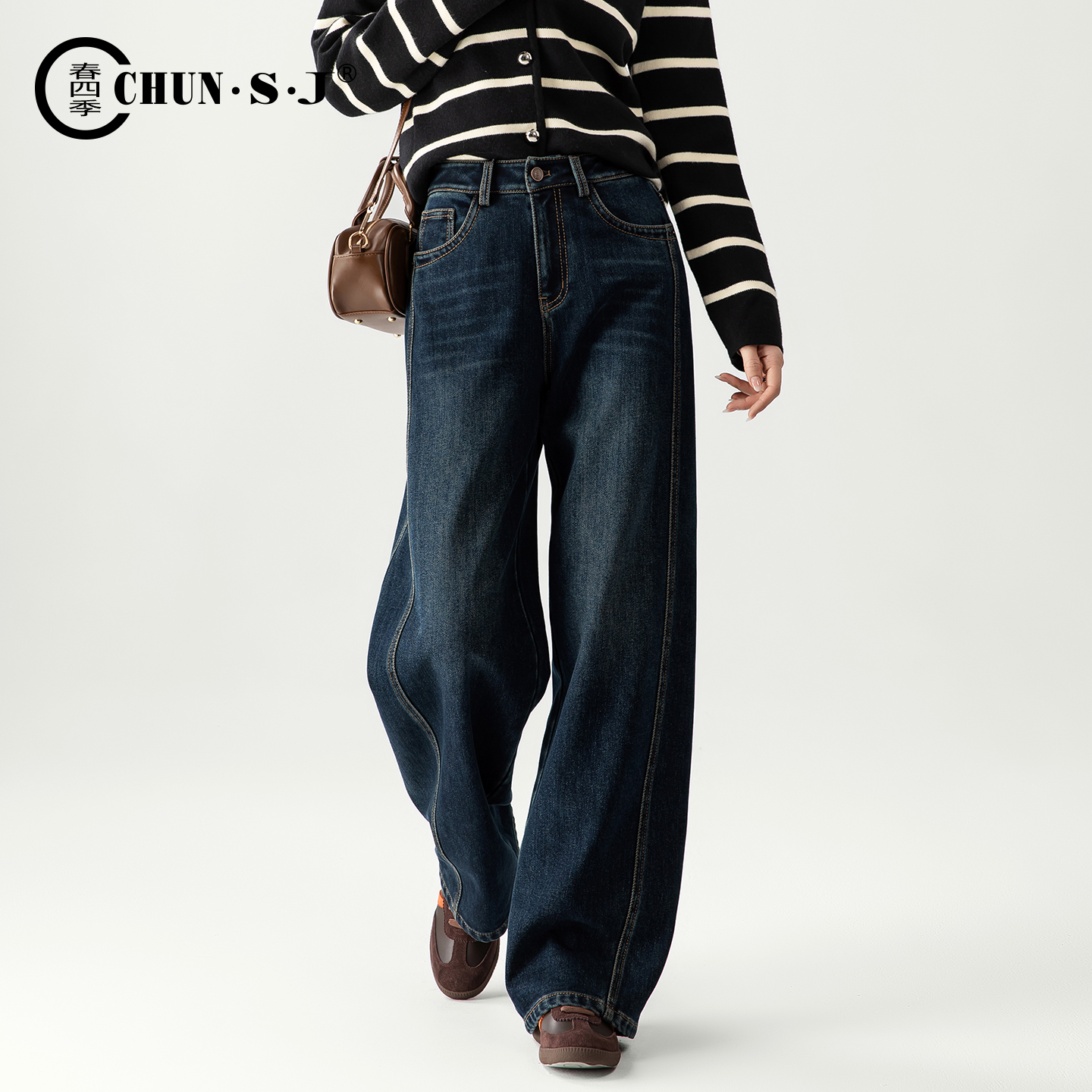 一体植绒 加厚裤 蓝灰色加绒牛仔裤 冬季 子弯刀阔腿裤 女2025新款