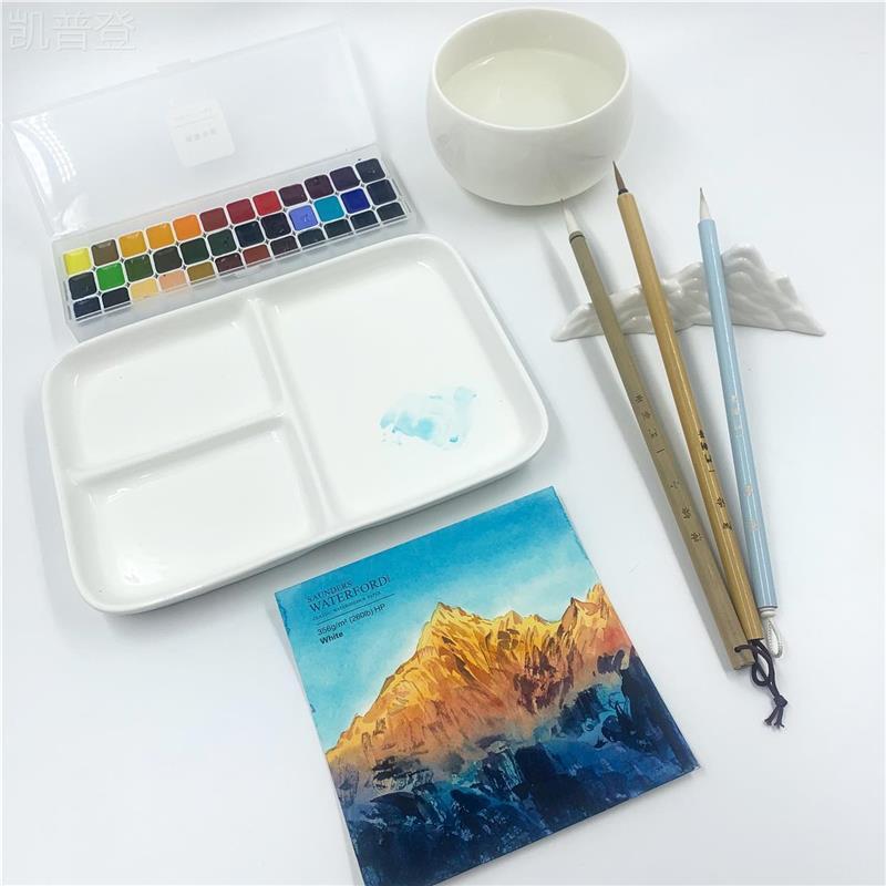 国画专用调色盘水彩陶瓷三格美术生大容量白瓷调色板瓷碟盘盘颜料