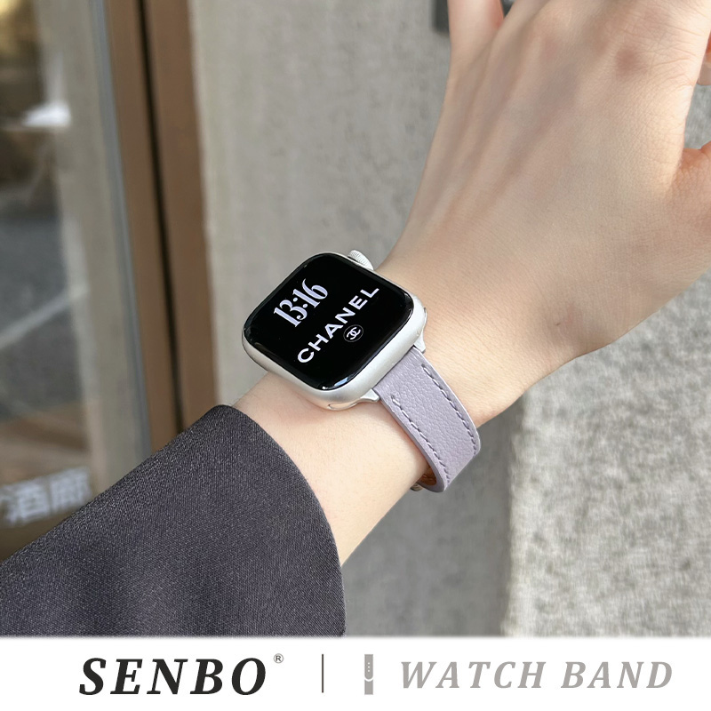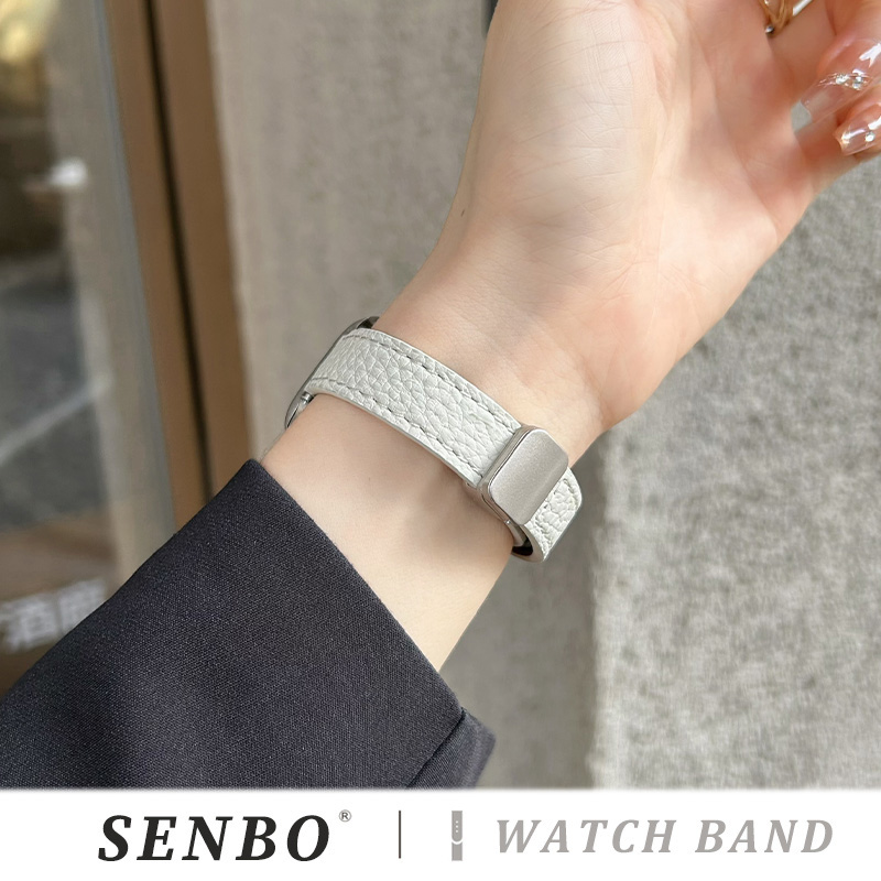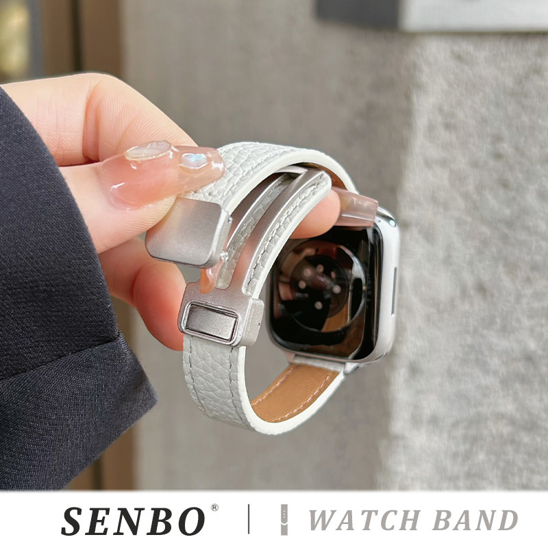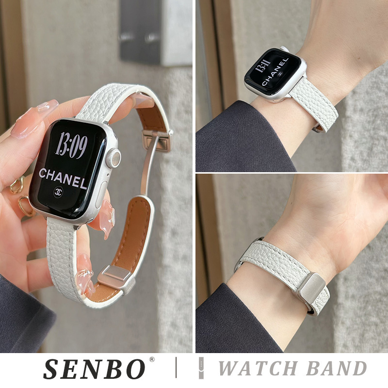 苹果s10手表带applewatch9 磁吸扣ultra3男士 6真皮皮质se代荔枝纹细款 运动女高级腕带 适用于iwatch11新款