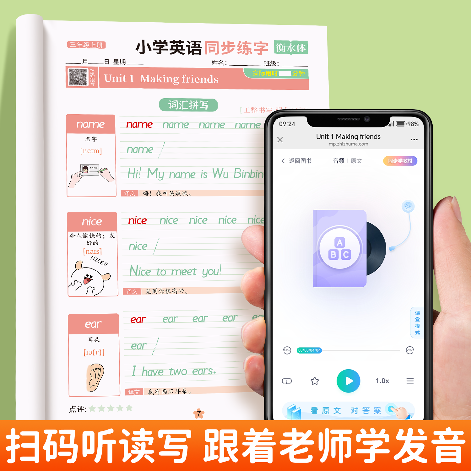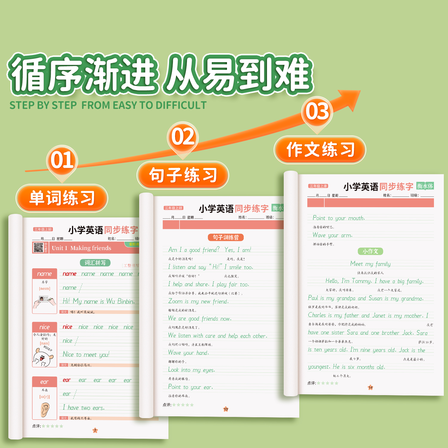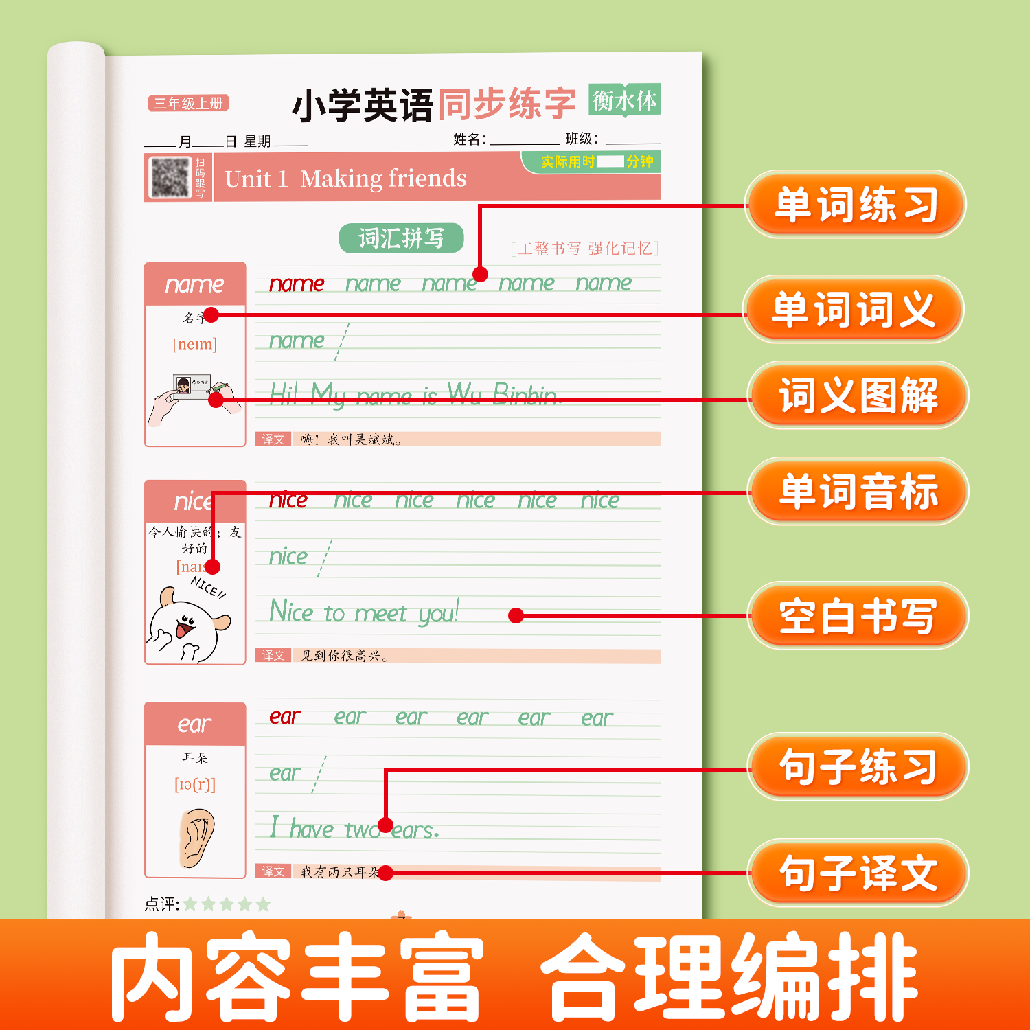 PEP衡水体3 人教版 6年级英语练字帖课本同步三四五六年级上册英语字帖小学生专用钢笔每日一练字母单词硬笔描红练习本 新版 2025秋季