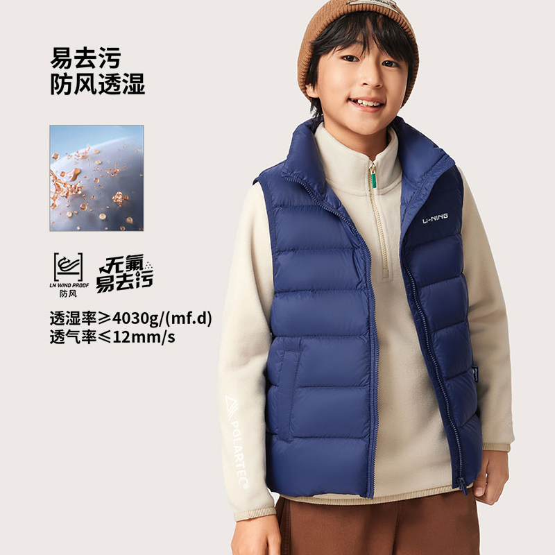 衣服 运动生活系列上衣秋冬季 李宁童装 羽绒马甲男童女童2025新款