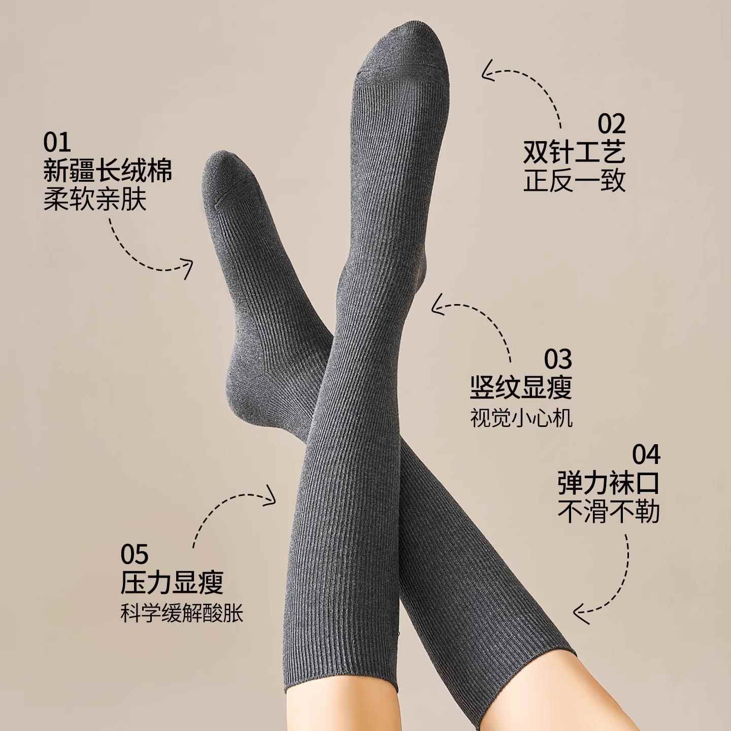 小腿袜子女春秋季 JK潮 过膝袜纯棉中筒袜微压显瘦无骨长筒长袜夏季
