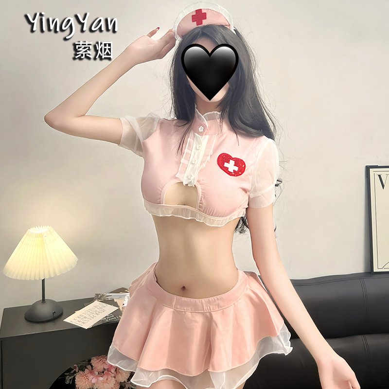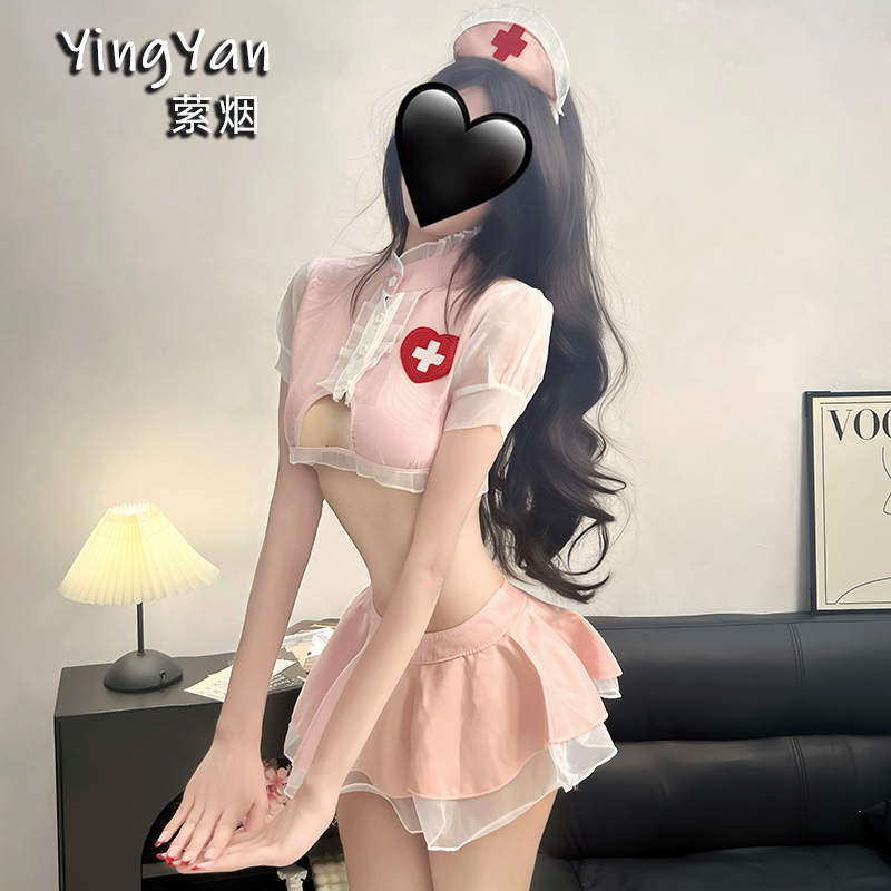 显瘦家居睡衣套装 萦烟性感薄款 网纱护士制服纯欲风镂空分体修身