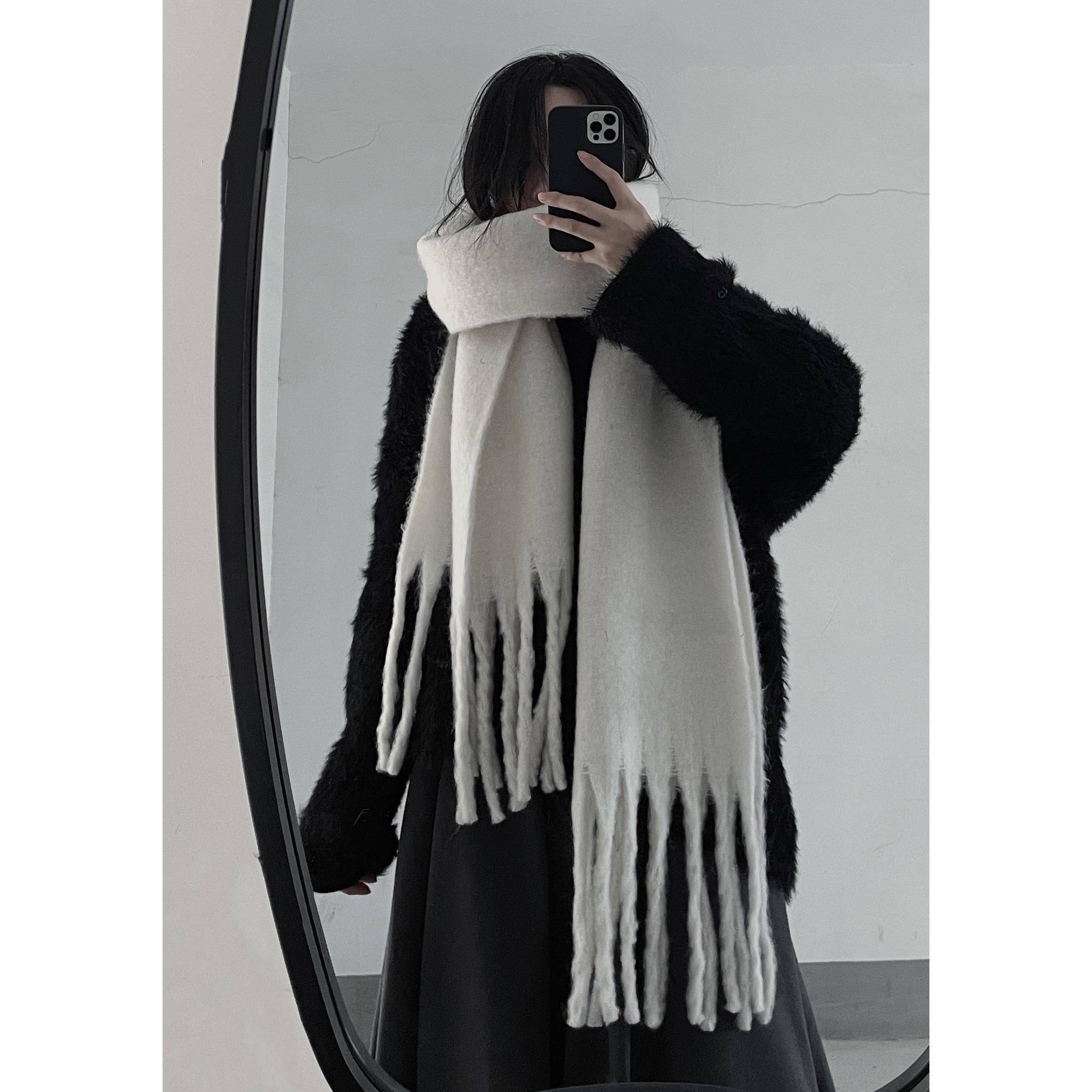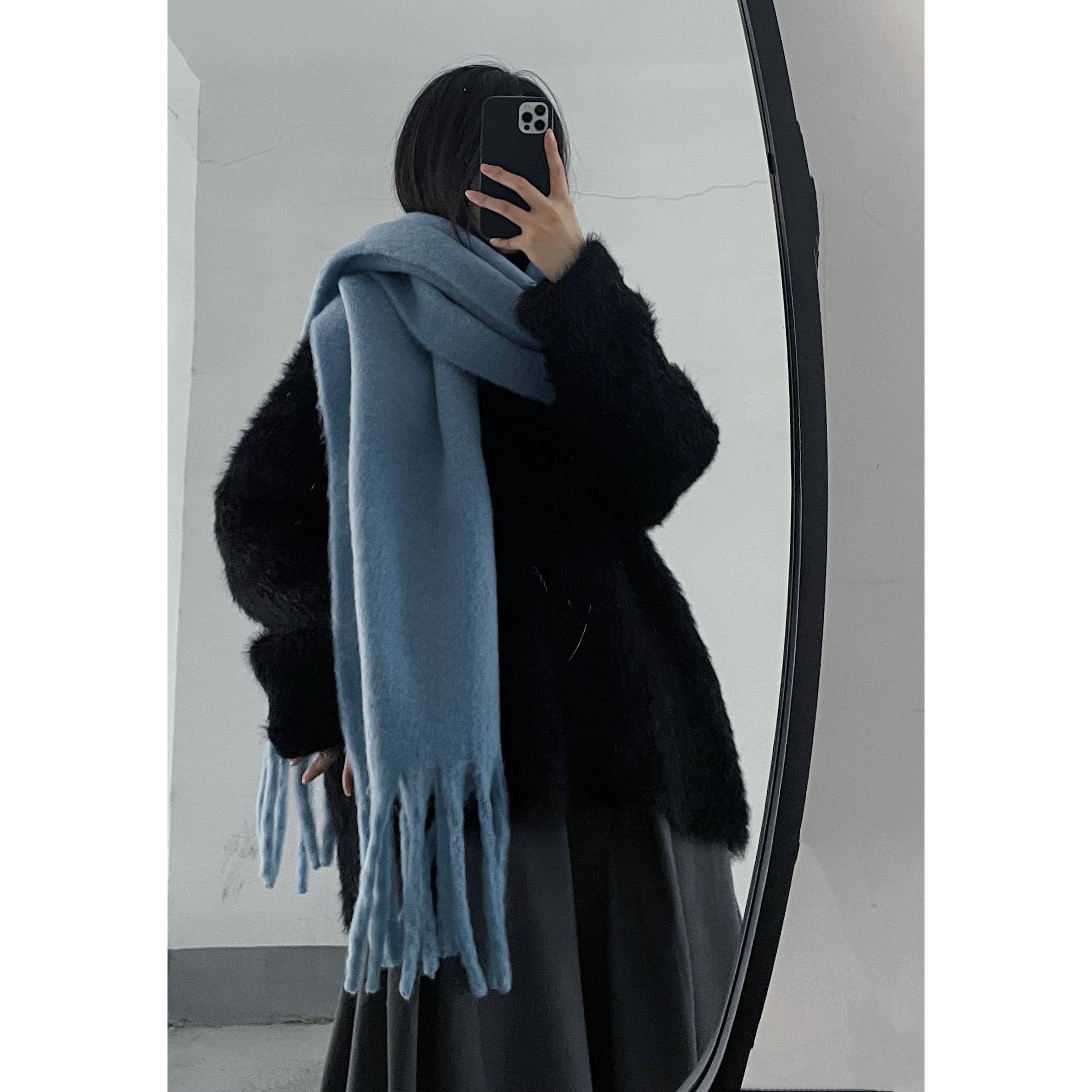 秋冬洋气百搭女士围巾披肩大件加厚色保暖大女1010c