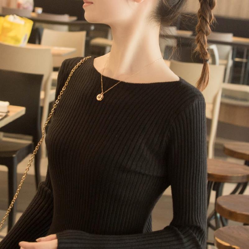 修身 打底衫 百搭上衣服 T恤女春秋内搭短款 设计感小众正肩纯棉长袖