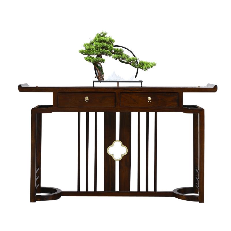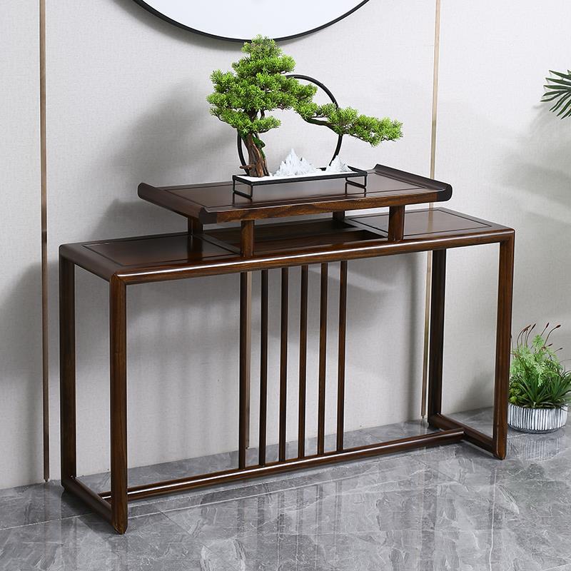新中式 全实木玄关台条案家用供桌入户门厅老榆木玄关柜 玄关桌中式