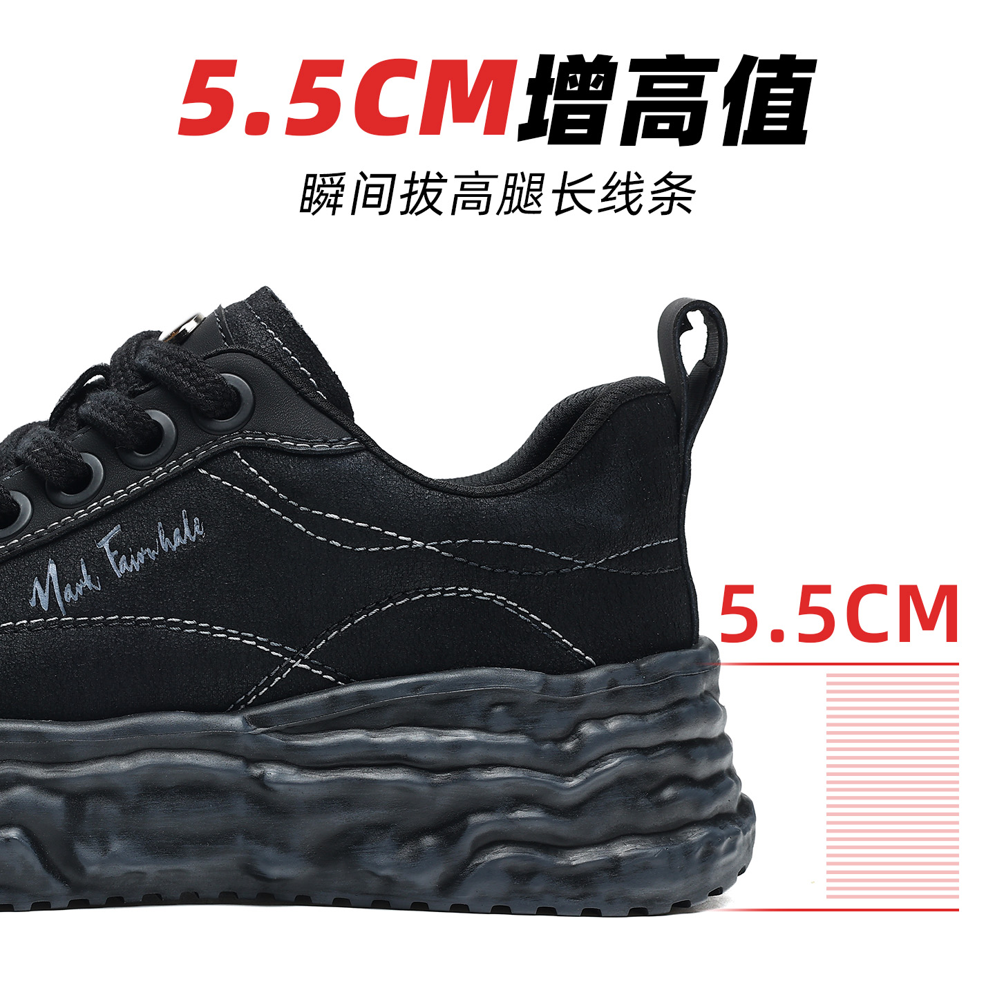 轻便舒适潮流运动休闲鞋 男鞋 2025秋冬新款 马克华菲黑色增高老爹鞋