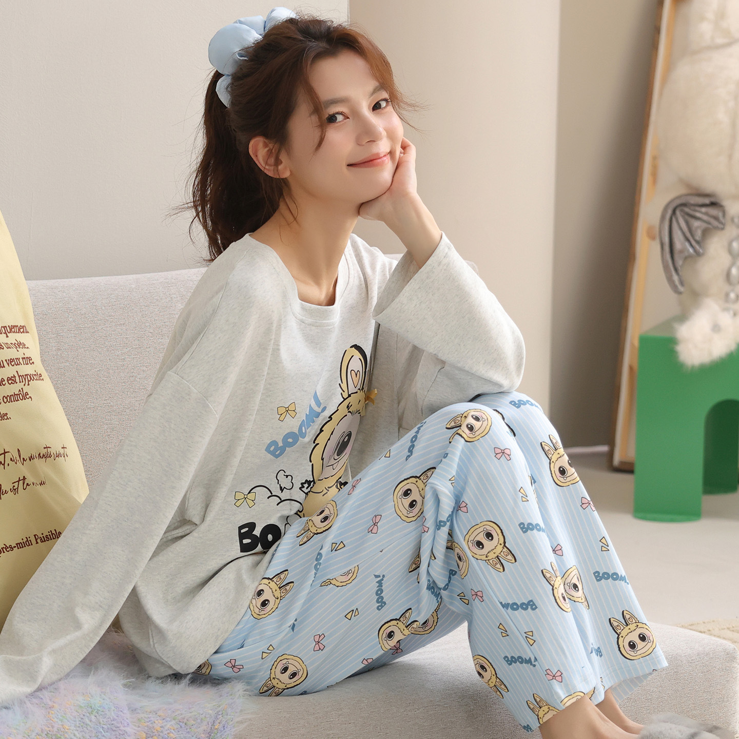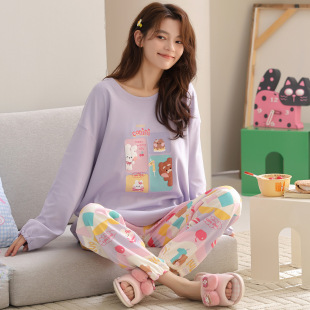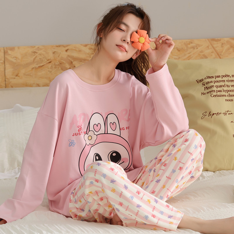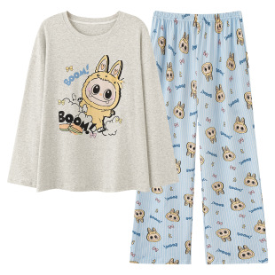 北极绒睡衣女春秋长袖 纯棉拉布卡通可爱女学生圆领外穿家居服套装
