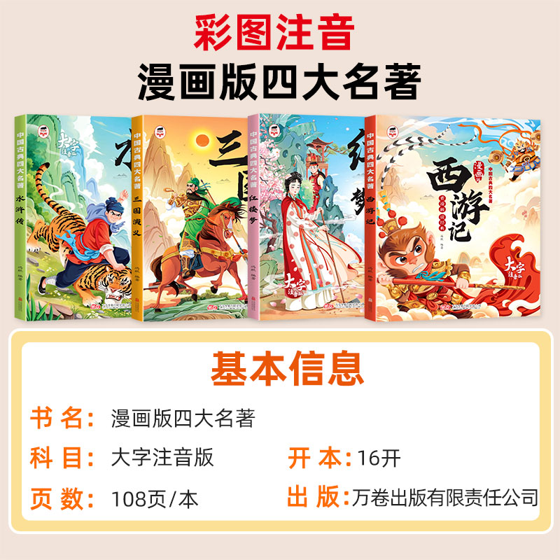 四大名著漫画版 速发 西游记三国演义红楼梦水浒传连环画四大名著少儿版 注音版 古典名著书籍J 绘本漫画一二年级课外阅读经典 正版