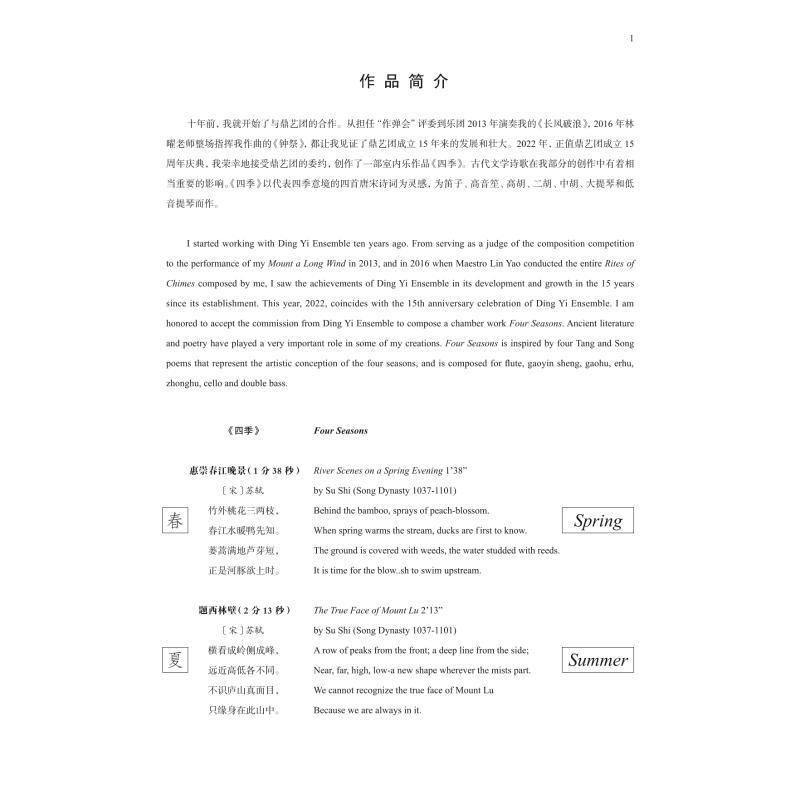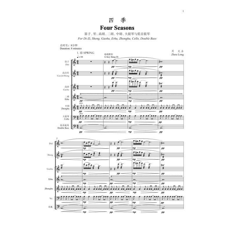Zhonghu 笙 中胡 二胡 四季 for Erhu cello Gaohu 高胡 Sheng Dizi 社 a周龙上海音乐出版 大提琴与低音提琴而作 为笛子