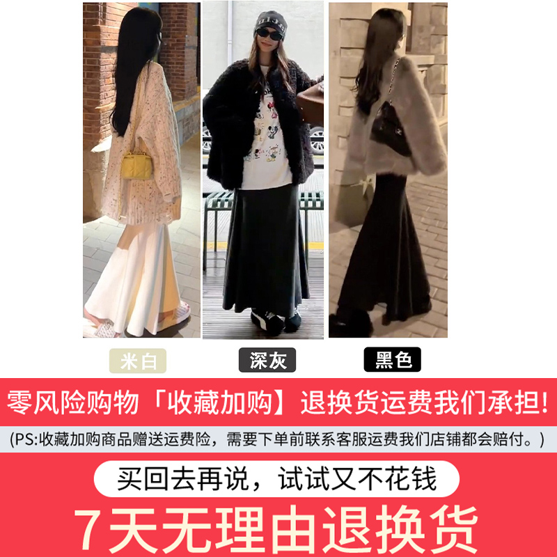 修身 高腰a字中长款 显瘦包臀裙 2025新款 灰色针织鱼尾半身裙女秋季