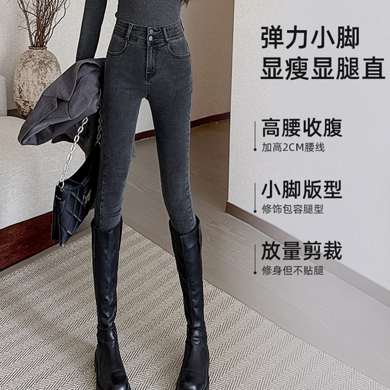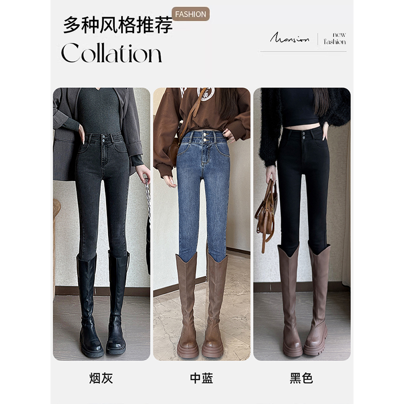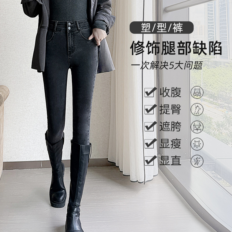 女加绒紧身喇叭裤 乔栈秋冬爆款 美人鱼双V收腰弹力大摆微喇牛仔裤