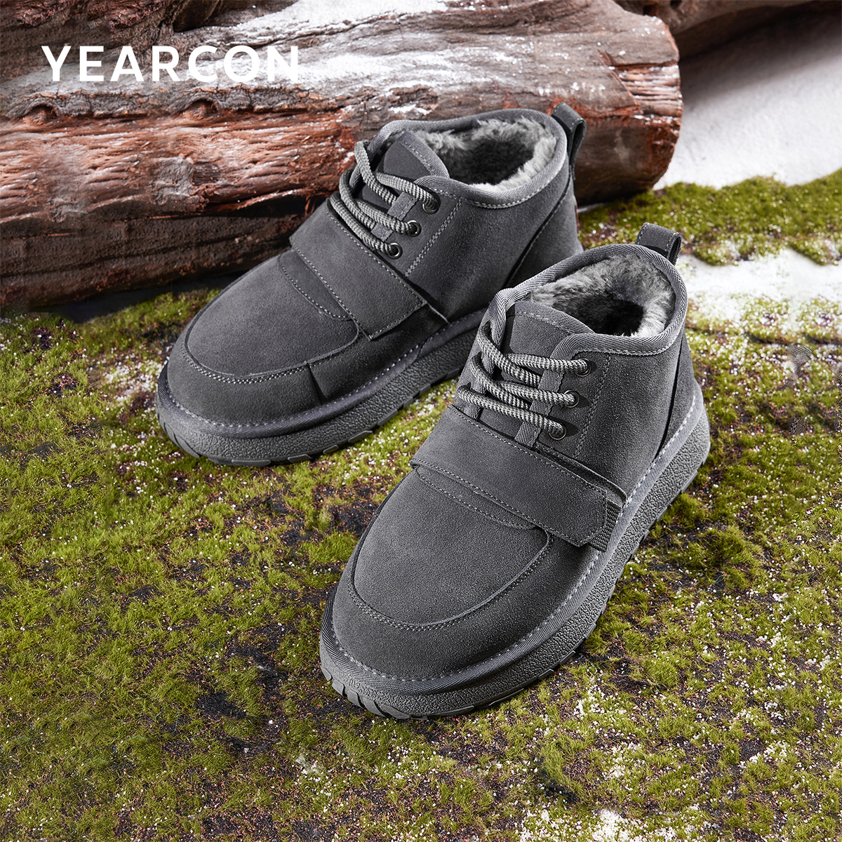 户外休闲勃肯鞋 意尔康男鞋 雪地靴加绒保暖棉鞋 男士 短靴 2025冬季