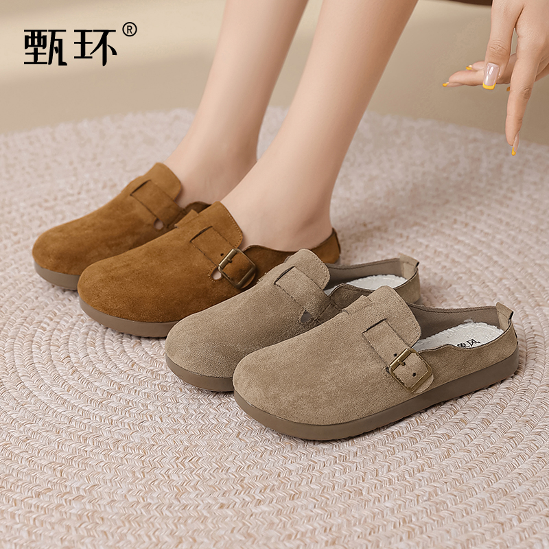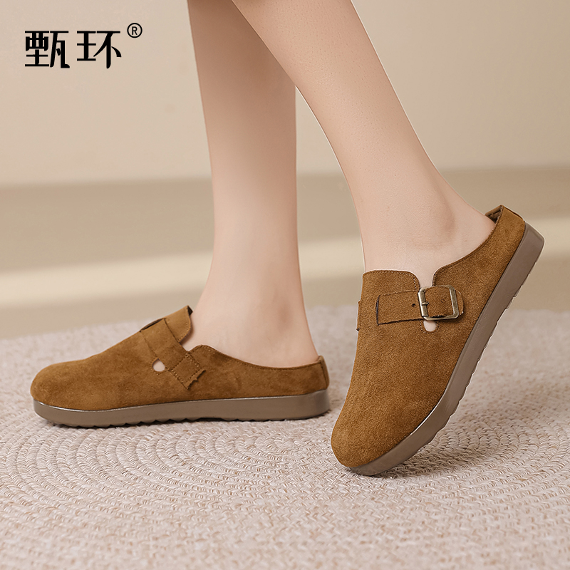 秋季 孕妇鞋 软底包头半拖鞋 妈妈勃肯鞋 平底懒人一脚蹬单鞋 甄环女鞋
