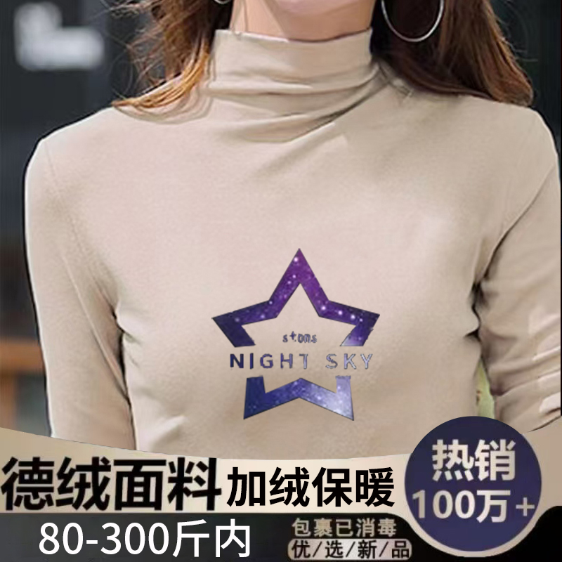 宽松百搭T恤休闲印花打底衫 大码 胖MM半高领长袖 秋冬2025新款 女装