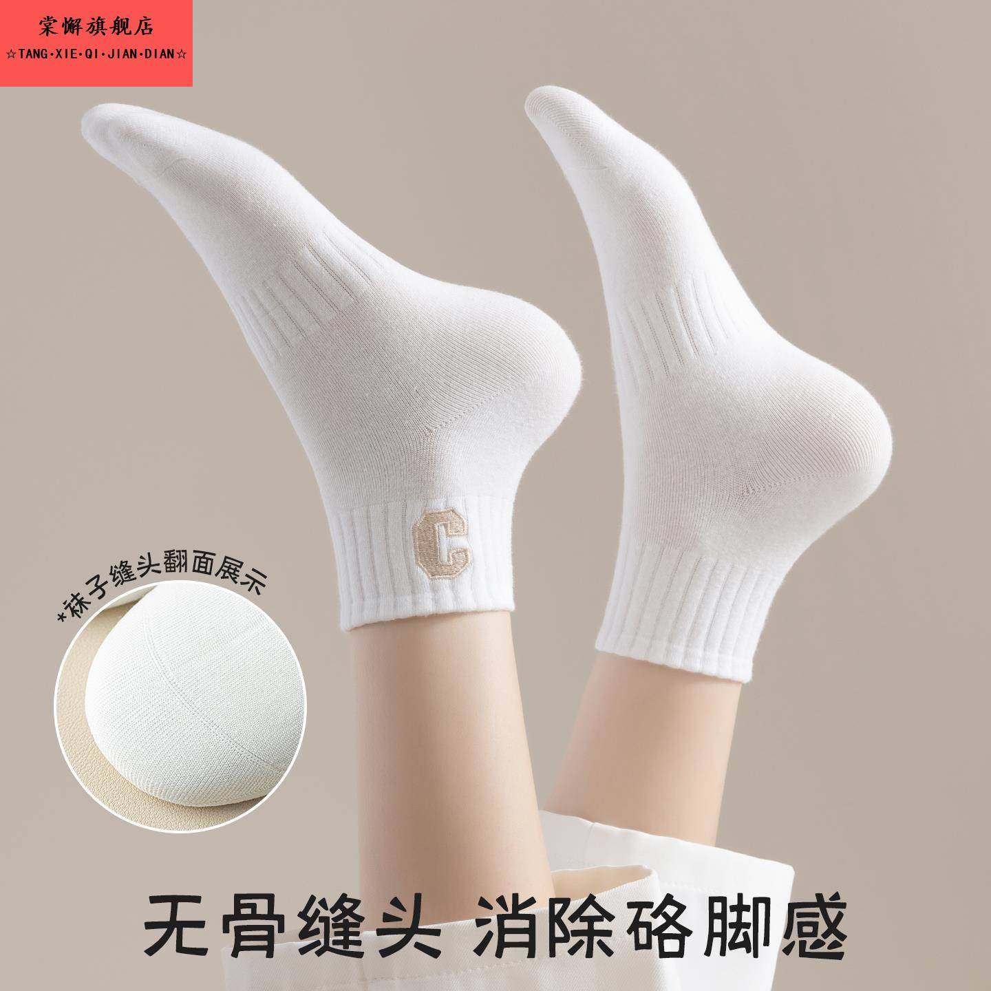 短袜夏薄款 袜子男款 纯棉中筒袜抗菌防臭运动青少年袜子男白色男士