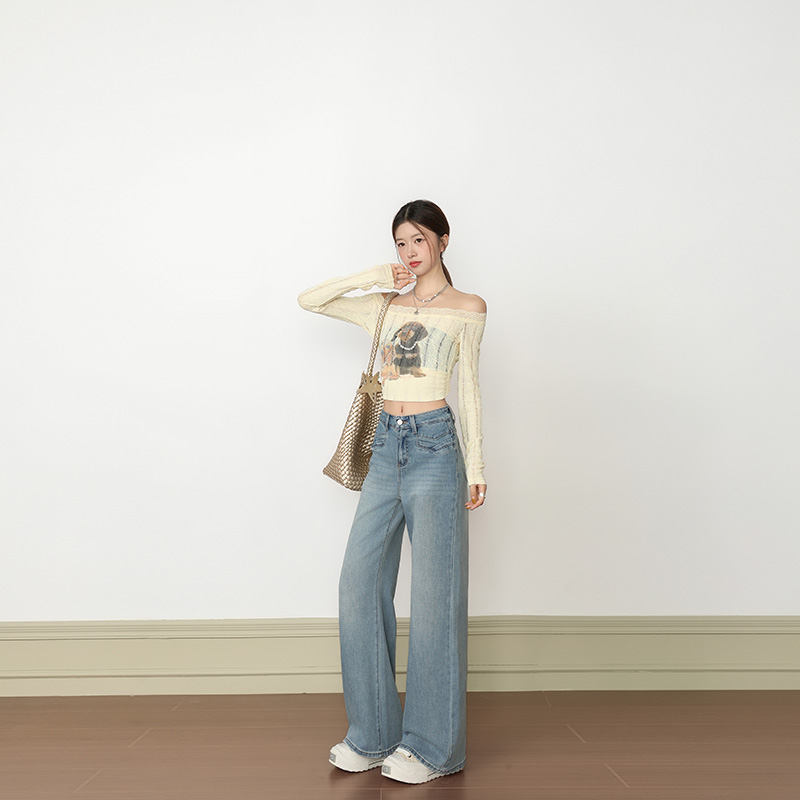 百搭拖地长裤 显瘦直筒裤 高腰宽松阔腿垂感窄版 罗蒙女士浅蓝牛仔裤