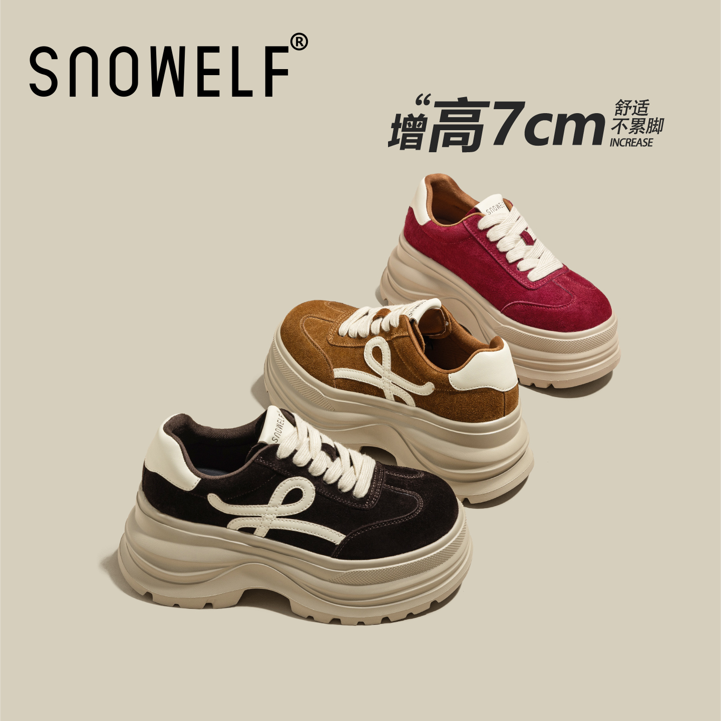 秋冬百搭轻便小个子内增高德训鞋 女2025新款 子厚底休闲板鞋 红色鞋