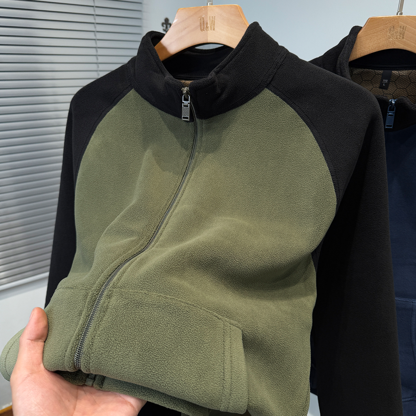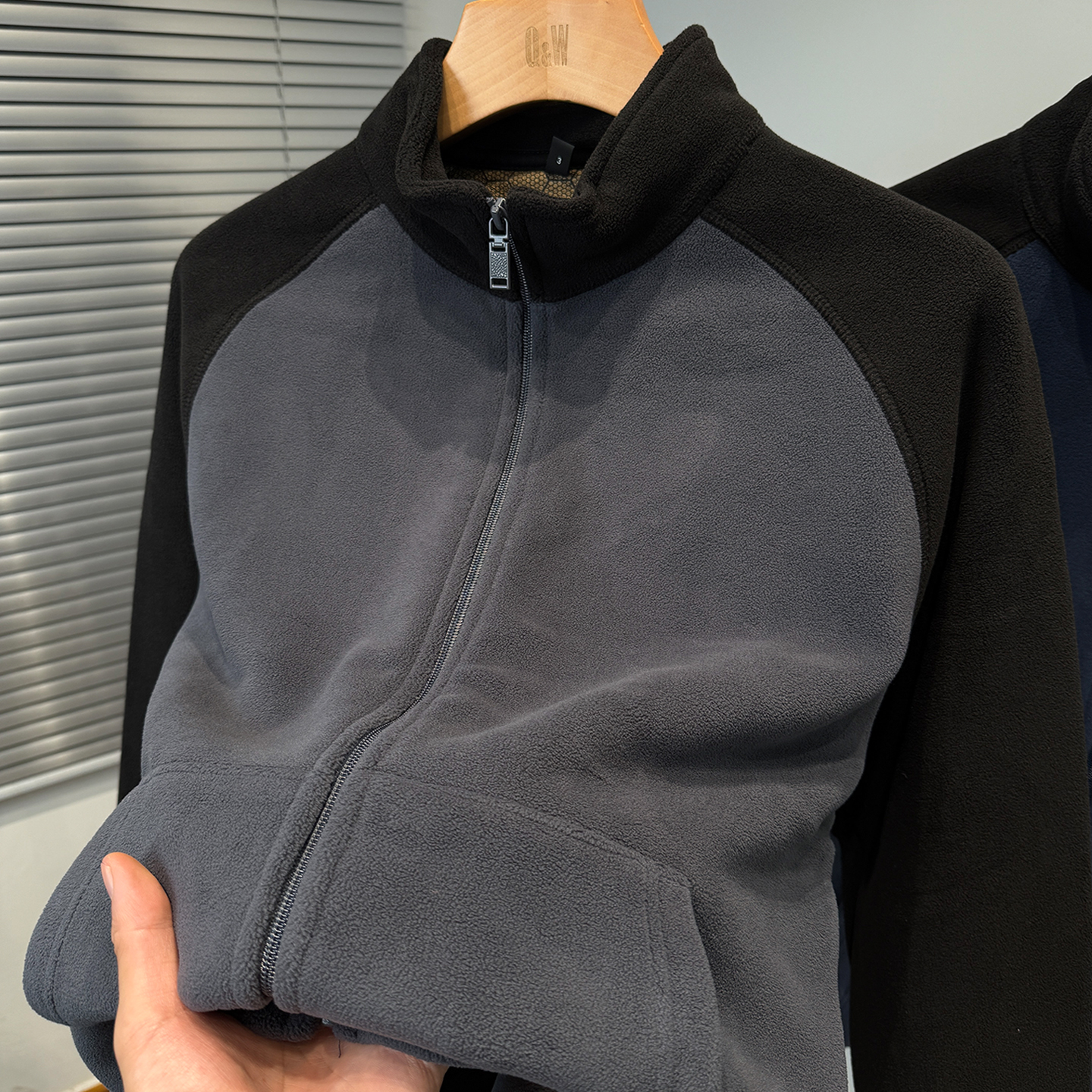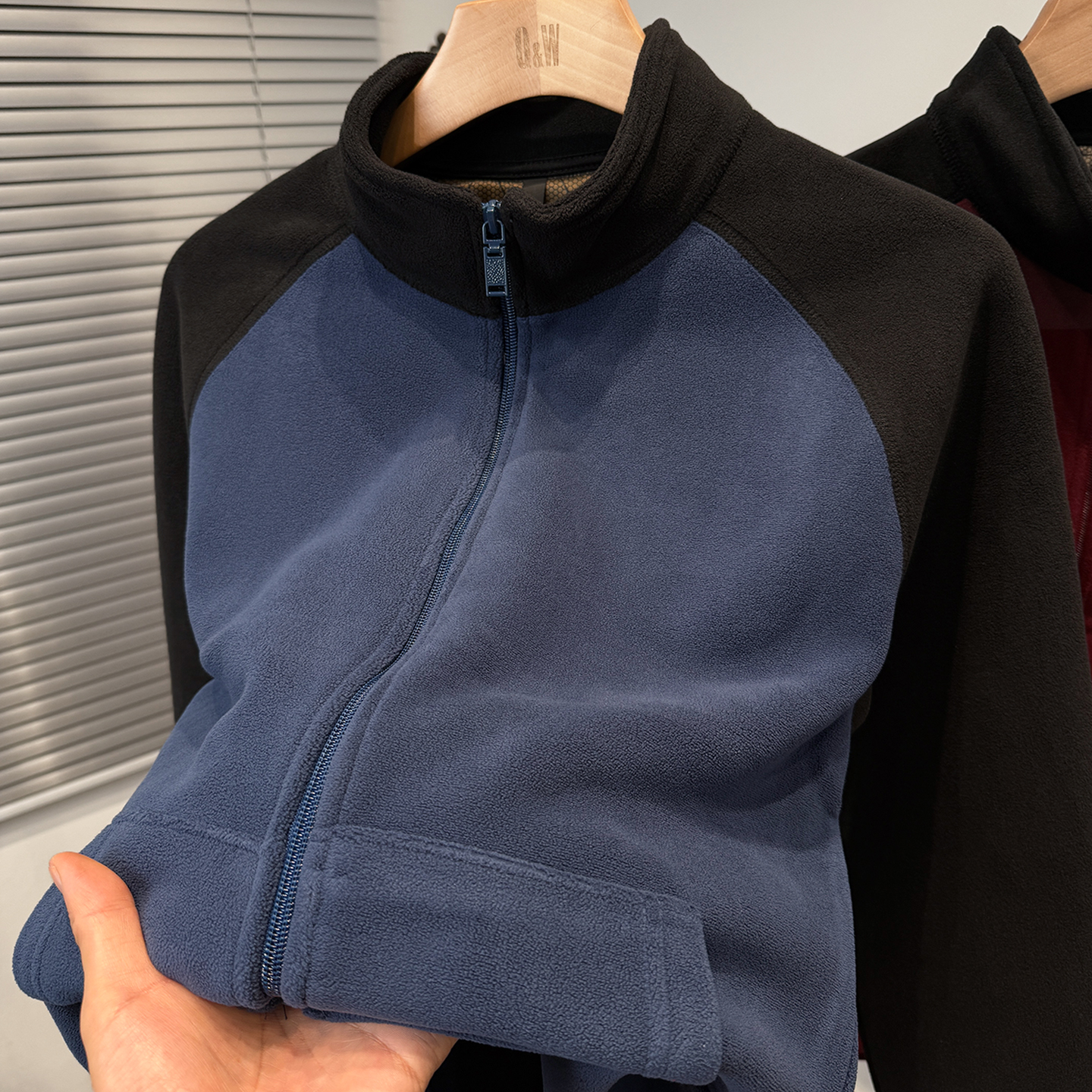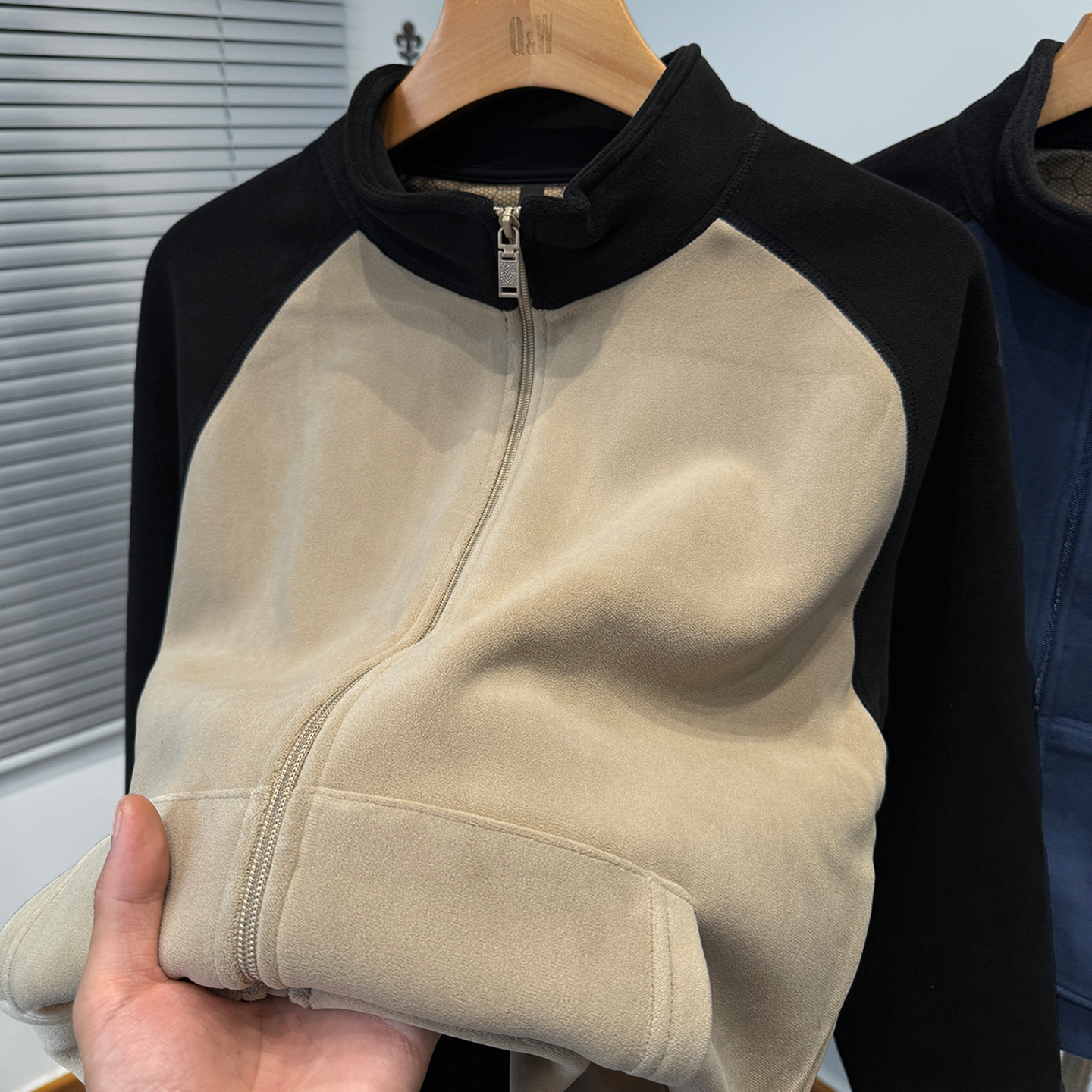 开衫 重磅奥粒绒卫衣男款 拼色插肩袖 加绒加厚外套男装 立领潮 秋冬季