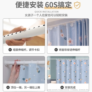 卧室遮光免打孔伸缩杆窗帘2025新款 隔断门帘浴室遮挡飘窗出租房