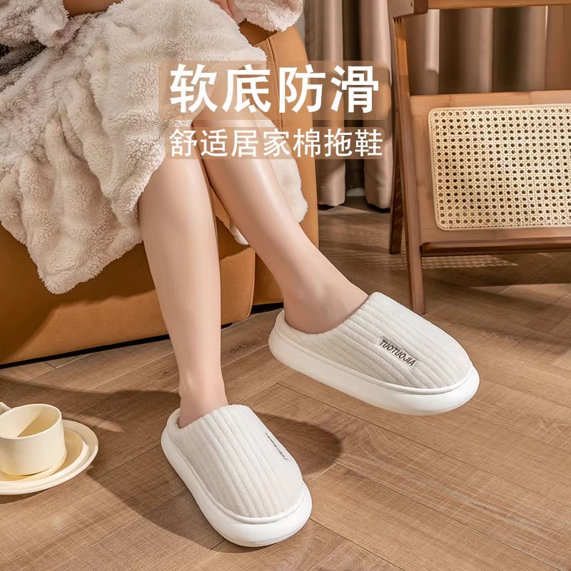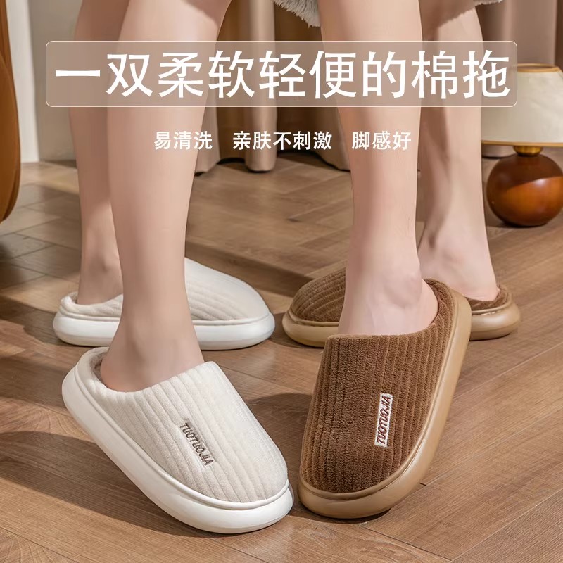 冬季 2025新款 室内防滑厚底保暖月子鞋 居家毛毛拖鞋 棉拖鞋 男士 女款