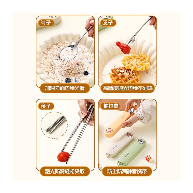 便携餐具三件套儿童 收纳盒316不锈钢筷子套装 小学生装 筷子勺子