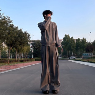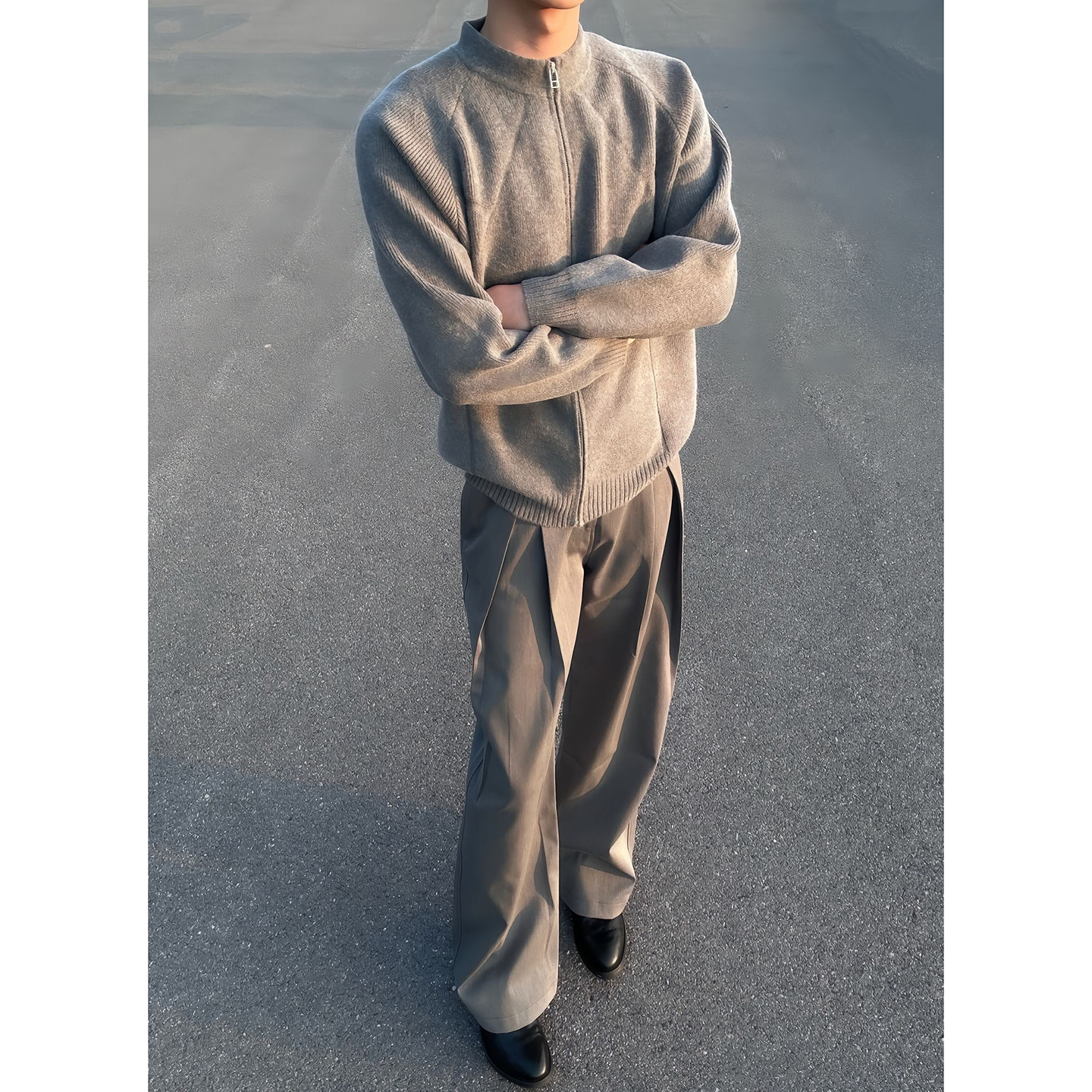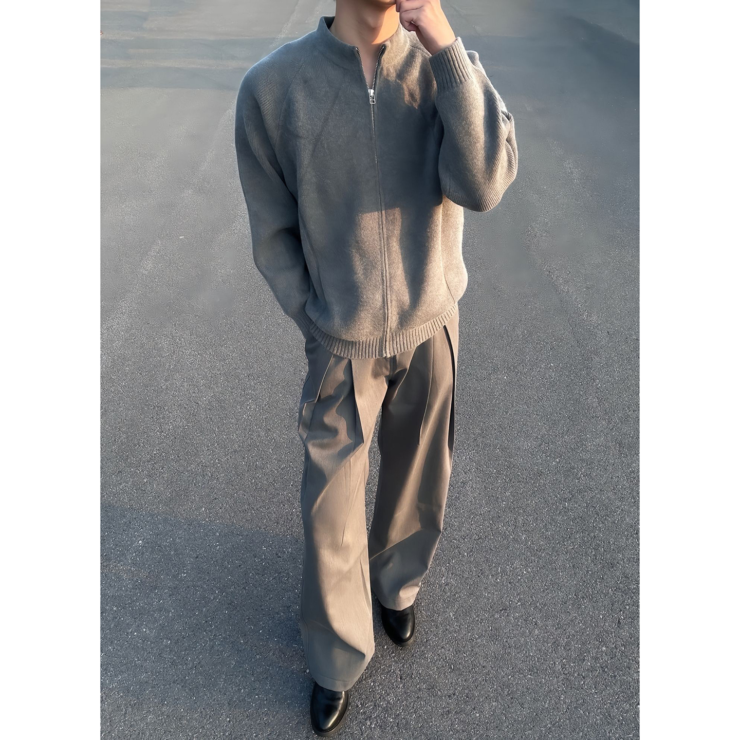 针织毛衣韩版 垂感A字打褶西裤 男装 秋季 高级感套装 灰色双拉链开衫