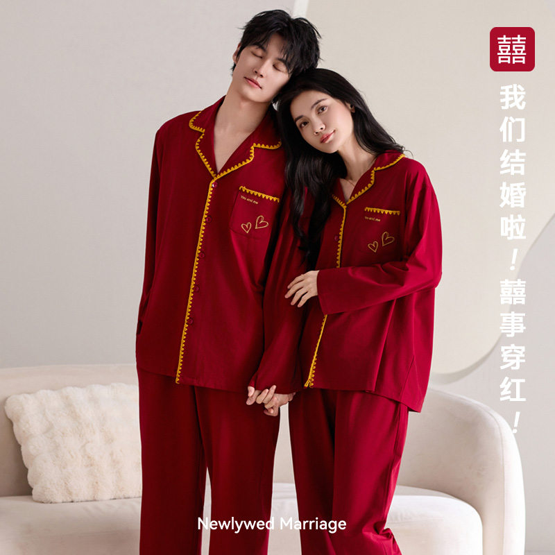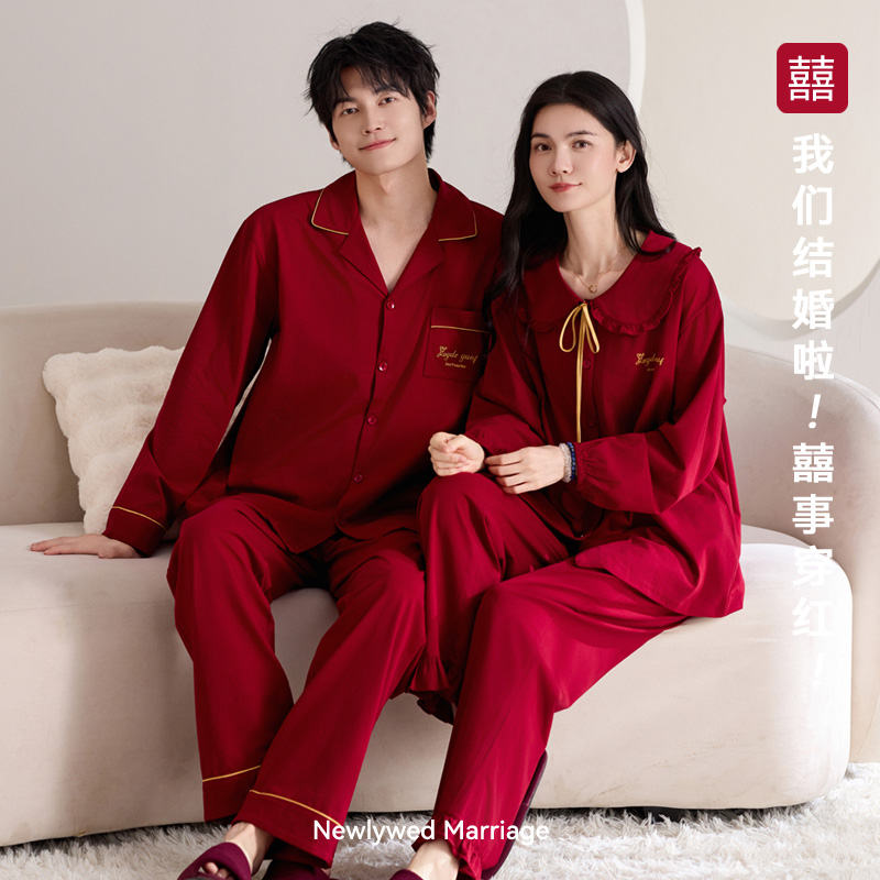 男纯棉本命年红色长袖 帕兰朵结婚新婚情侣睡衣女春秋季 2025新款