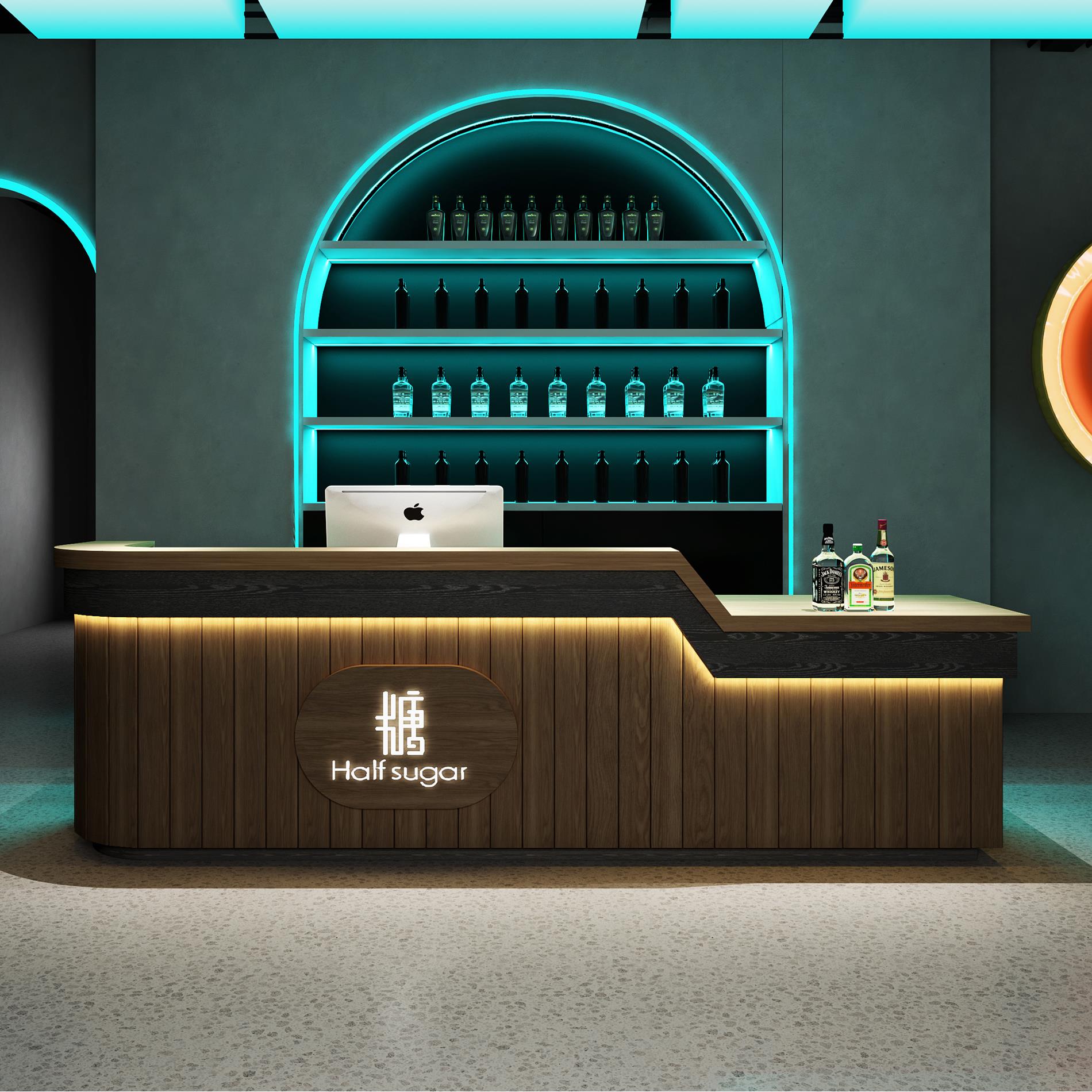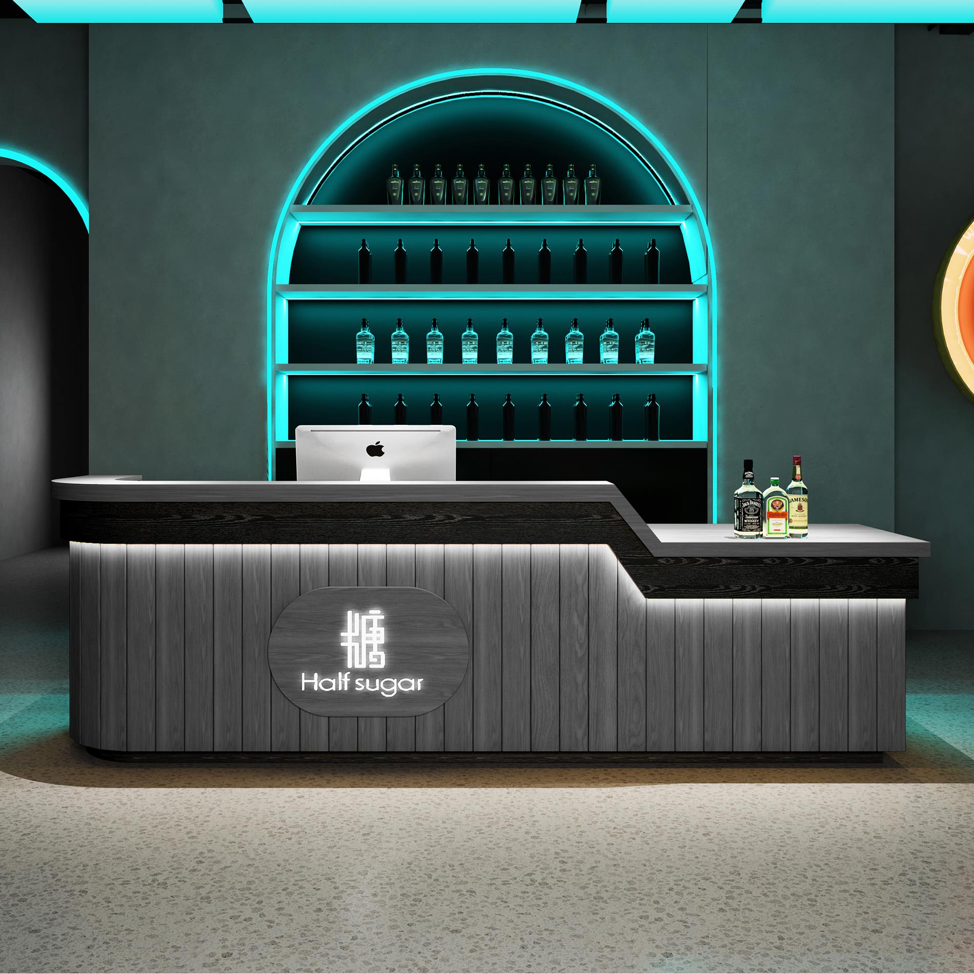收银台现代简约店铺柜台美容院奶茶店圆弧吧台轻奢公司前台接待台