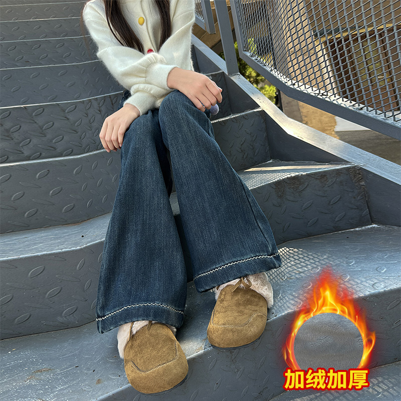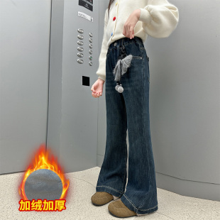 保暖直筒裤 加绒加厚雪尼尔阔腿裤 宽松妈妈大码 新款 子 女2025秋冬季